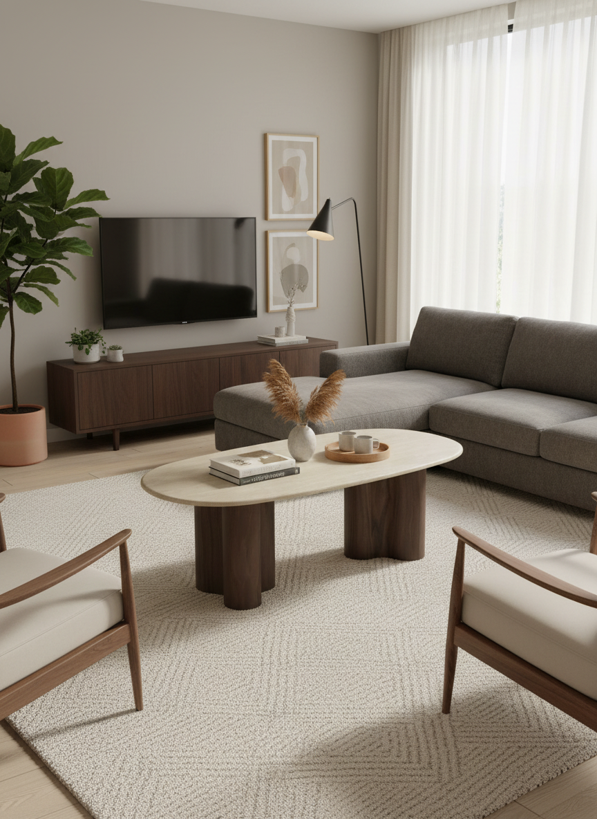 La Mesa de Centro es una pieza de diseño contemporáneo que destaca por su equilibrio perfecto entre minimalismo arquitectónico y materiales naturales de primera calidad.