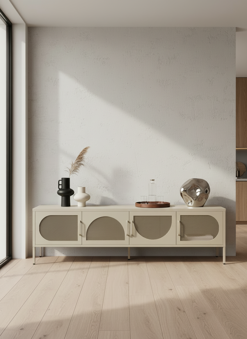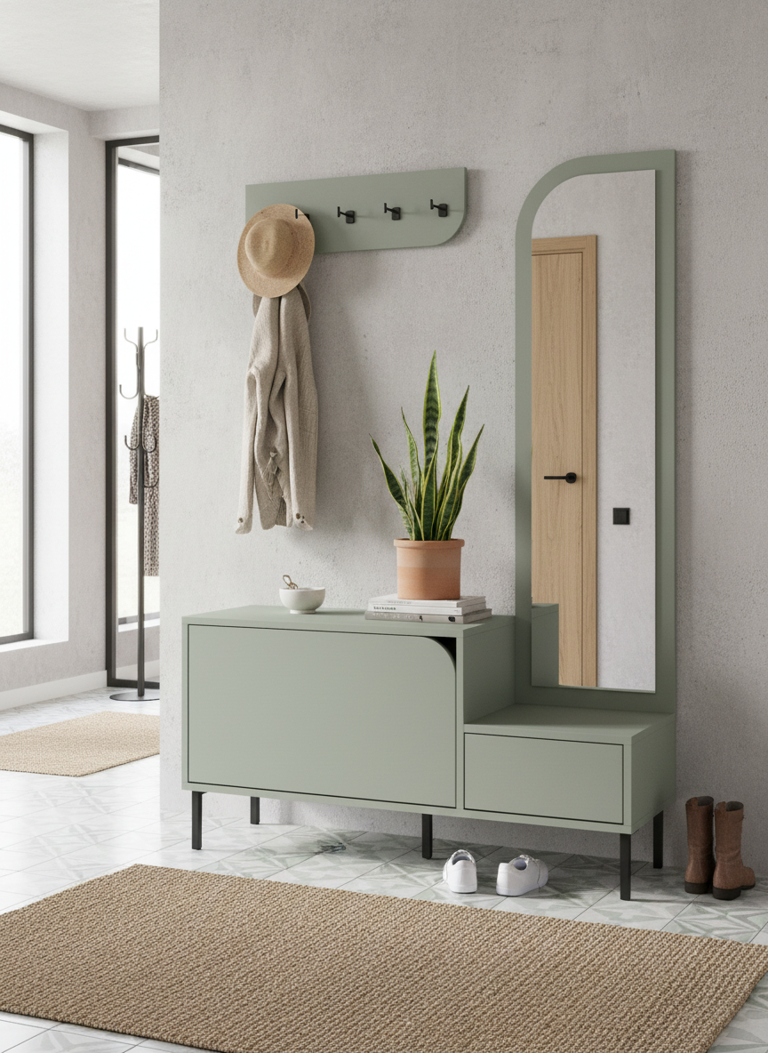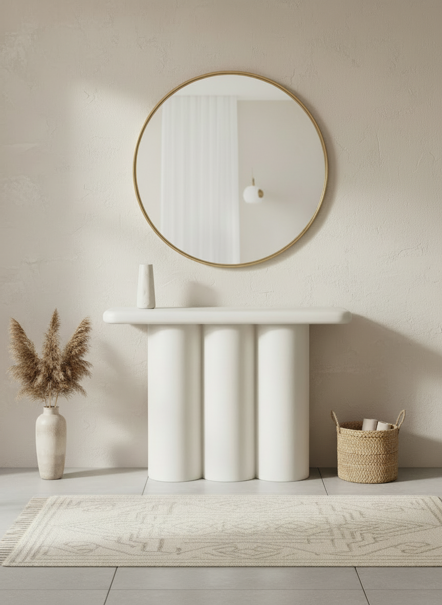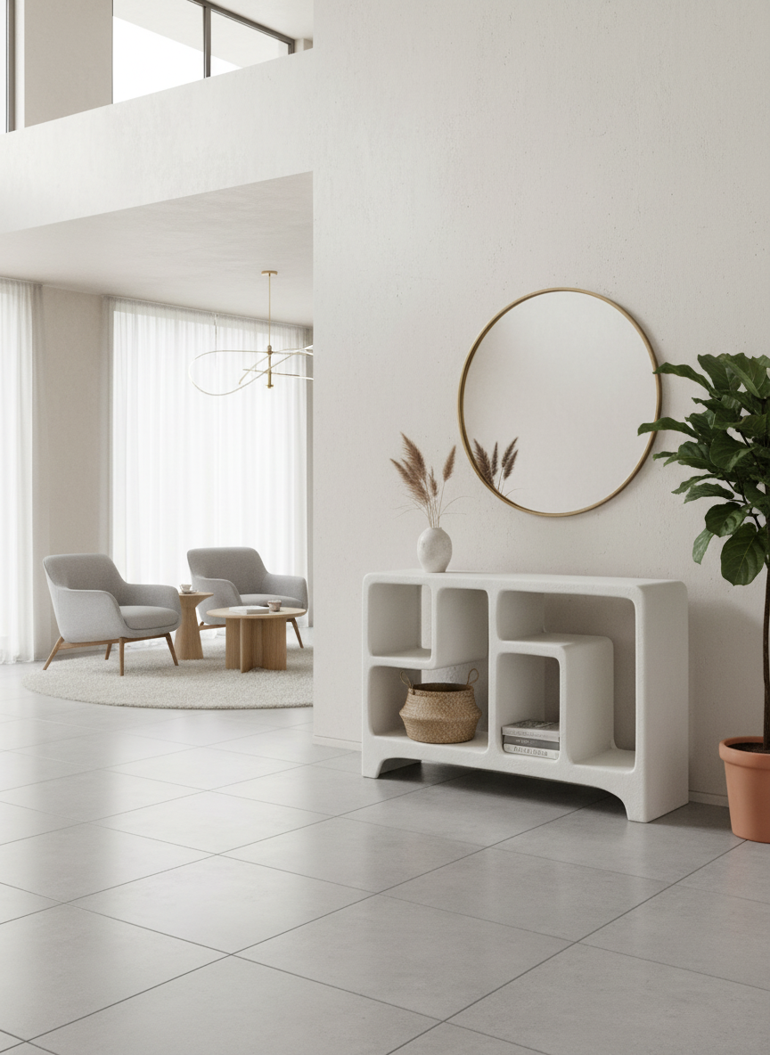 Diseño moderno y limpio, ideal para entradas o salas, con estructura resistente y un estilo minimalista.