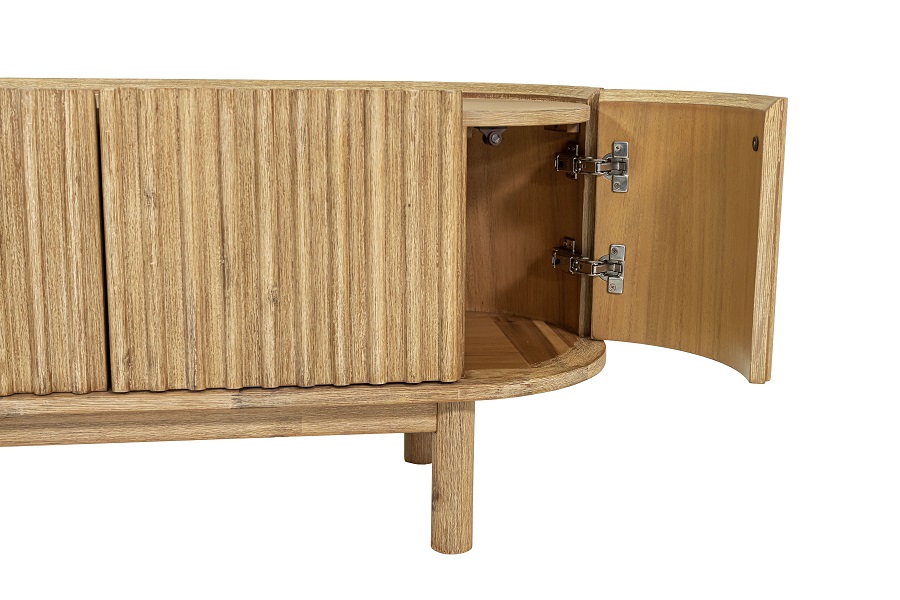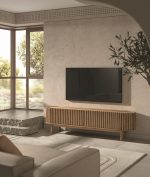 Con unas dimensiones de 200 cm de ancho, 45 cm de fondo y 55 cm de alto, ofrece una superficie amplia para televisores de gran formato, así como espacio adicional para organizar dispositivos electrónicos, decoración o almacenamiento. Su diseño equilibrado y funcional lo convierte en una opción práctica sin renunciar al estilo.