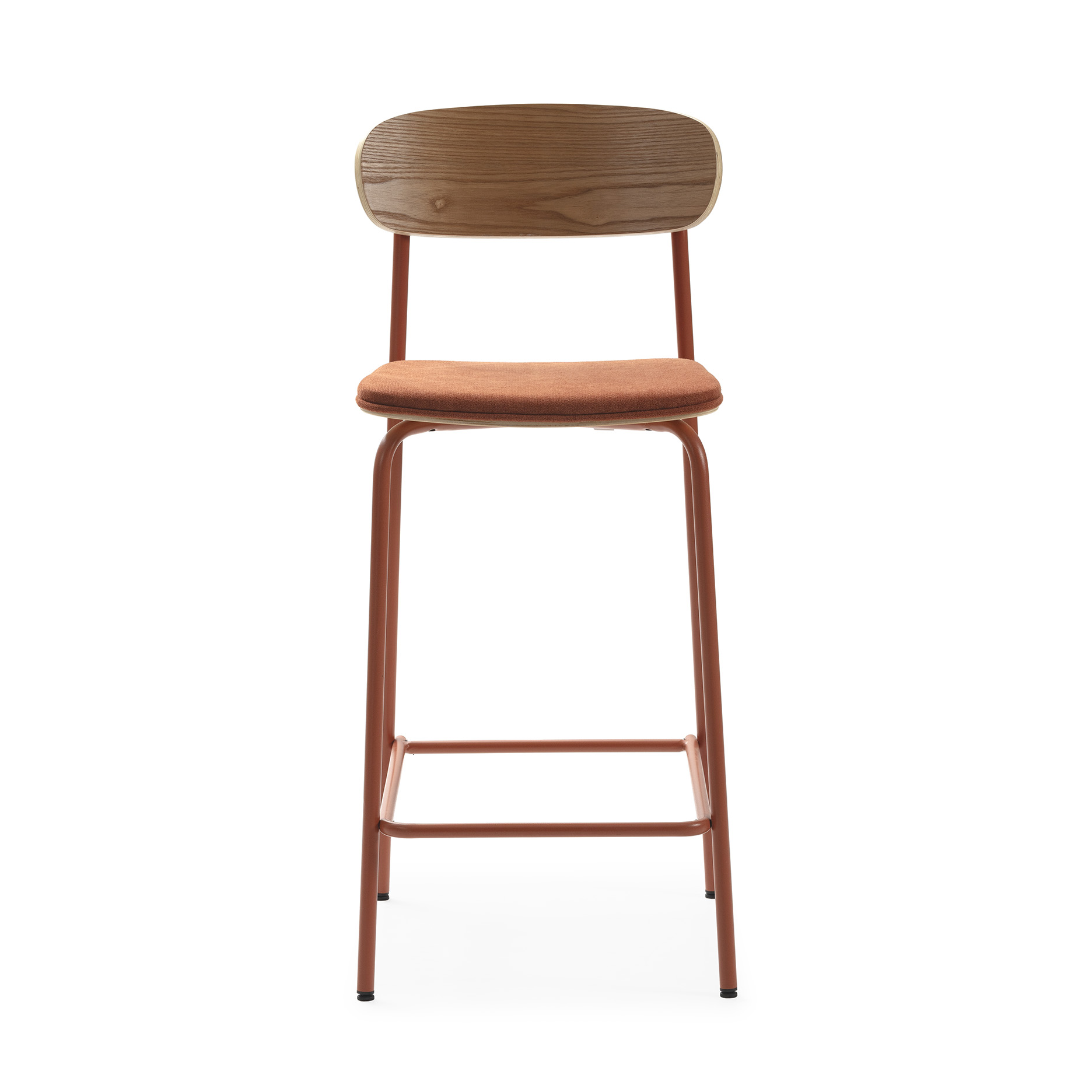 Disfruta cada momento alrededor de tu barra o isla de cocina con este taburete de diseño minimalista y elegante. Su asiento y respaldo tapizados en tela aportan una comodidad envolvente, perfecta para desayunos largos, cenas informales o reuniones con amigos en un ambiente relajado.