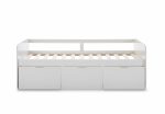 Cuenta con tres amplios cajones con ruedas, perfectos para guardar ropa de cama, juguetes o accesorios, manteniendo todo organizado y siempre a mano. Además, su estructura incluye barandillas laterales que aportan seguridad adicional durante el descanso de los más pequeños.