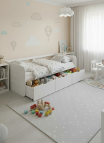 Es una cama versátil, resistente y pensada para acompañar el crecimiento de los niños con comodidad y estilo, convirtiéndose en una pieza esencial en cualquier habitación infantil.