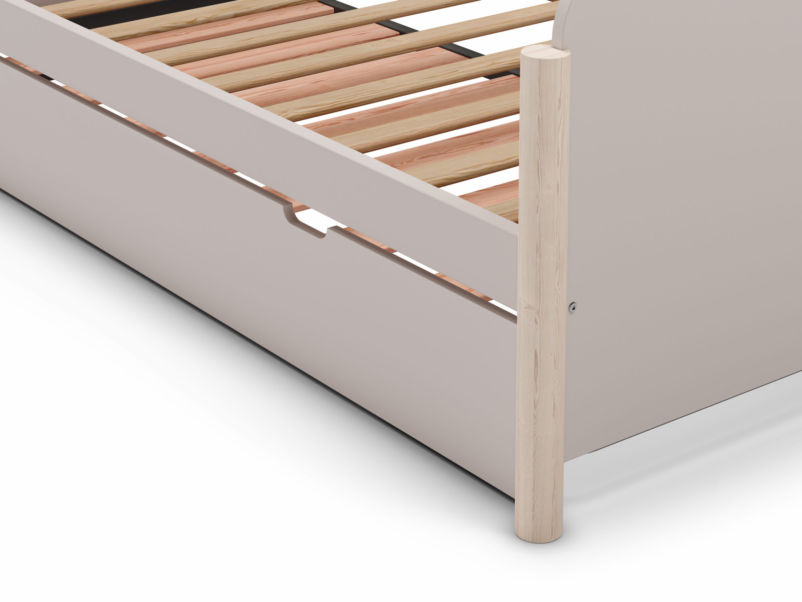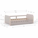 El mayor valor de este modelo radica en su capacidad de transformación. La cama principal individual esconde un somier extraíble que se eleva hasta la misma altura, creando una cómoda cama doble. Fabricada para la durabilidad, su estructura está construida con la calidez de la madera de pino natural y paneles robustos de DM, disponible en acabados crema y detalles en madera que aportan luminosidad y calidez.