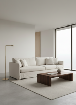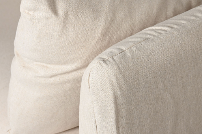 El diseño recto de su estructura se equilibra con cojines amplios y mullidos que ofrecen una comodidad excepcional, logrando ese efecto “soft & cozy” tan buscado en los espacios premium modernos. La funda con caída elegante y líneas limpias aporta un toque desenfadado pero refinado, ideal para quienes valoran un estilo chic sin esfuerzo.