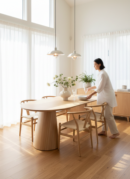 Mesa extensible, diseño moderno y orgánico