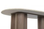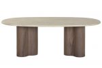 La Mesa de centro ovalada Venus es una pieza de diseño contemporáneo que destaca por su equilibrio perfecto entre minimalismo arquitectónico y materiales naturales de primera calidad. Su exclusiva tapa ovalada en mármol macizo, cuidadosamente pulido para revelar vetas únicas e irrepetibles, se combina con una base escultórica formada por columnas de madera maciza de mango, aportando una solidez imponente y un carácter artístico inconfundible.