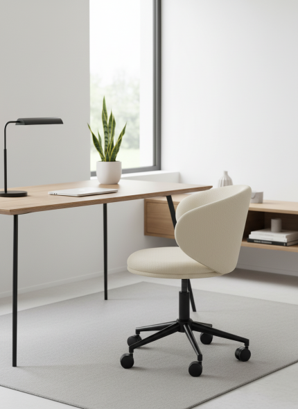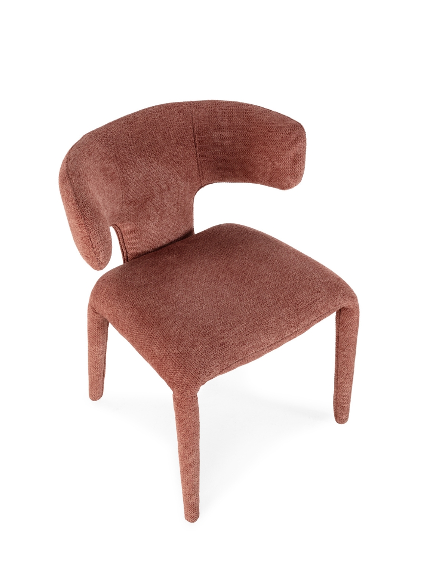 La silla de diseño tapizada redefine el concepto de estilo contemporáneo. Su silueta orgánica y fluida envuelve el cuerpo con suavidad, mientras que su respaldo envolvente aporta comodidad y una estética única que destaca en cualquier espacio.
