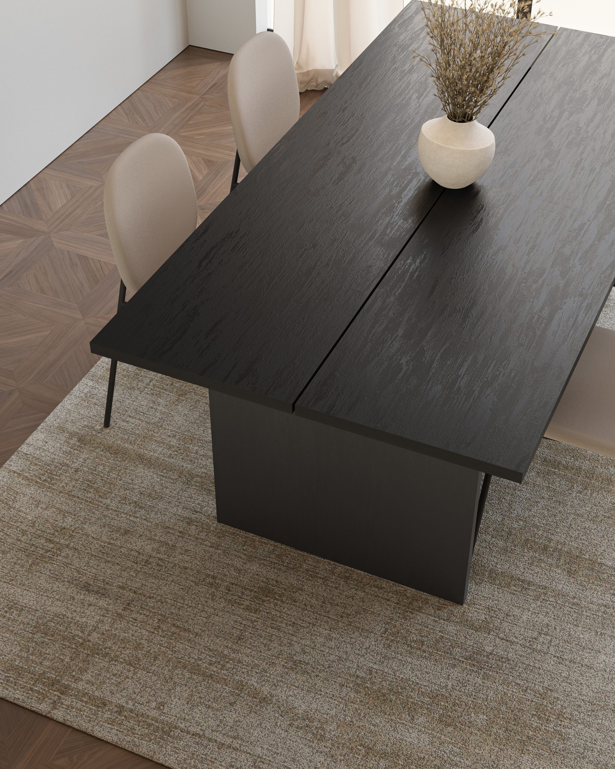 El estilo de la mesa es puramente funcional y escandinavo/contemporáneo, diseñada para integrarse discretamente en cualquier ambiente, desde una oficina doméstica hasta una salón. La clave de esta mesa reside en su versatilidad cromática. Está disponible en tres acabados de tendencia: el sobrio y elegante negro (ideal para contrastes modernos), el elegante roble UD , y el luminoso roble Cádiz.