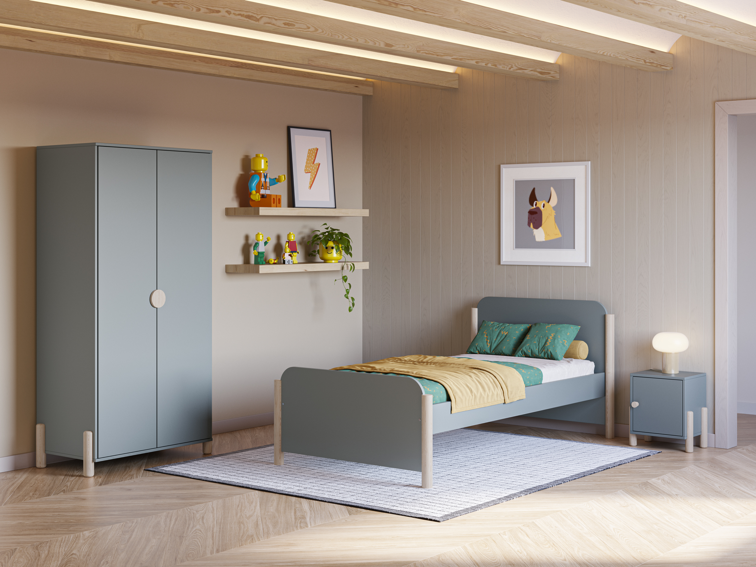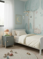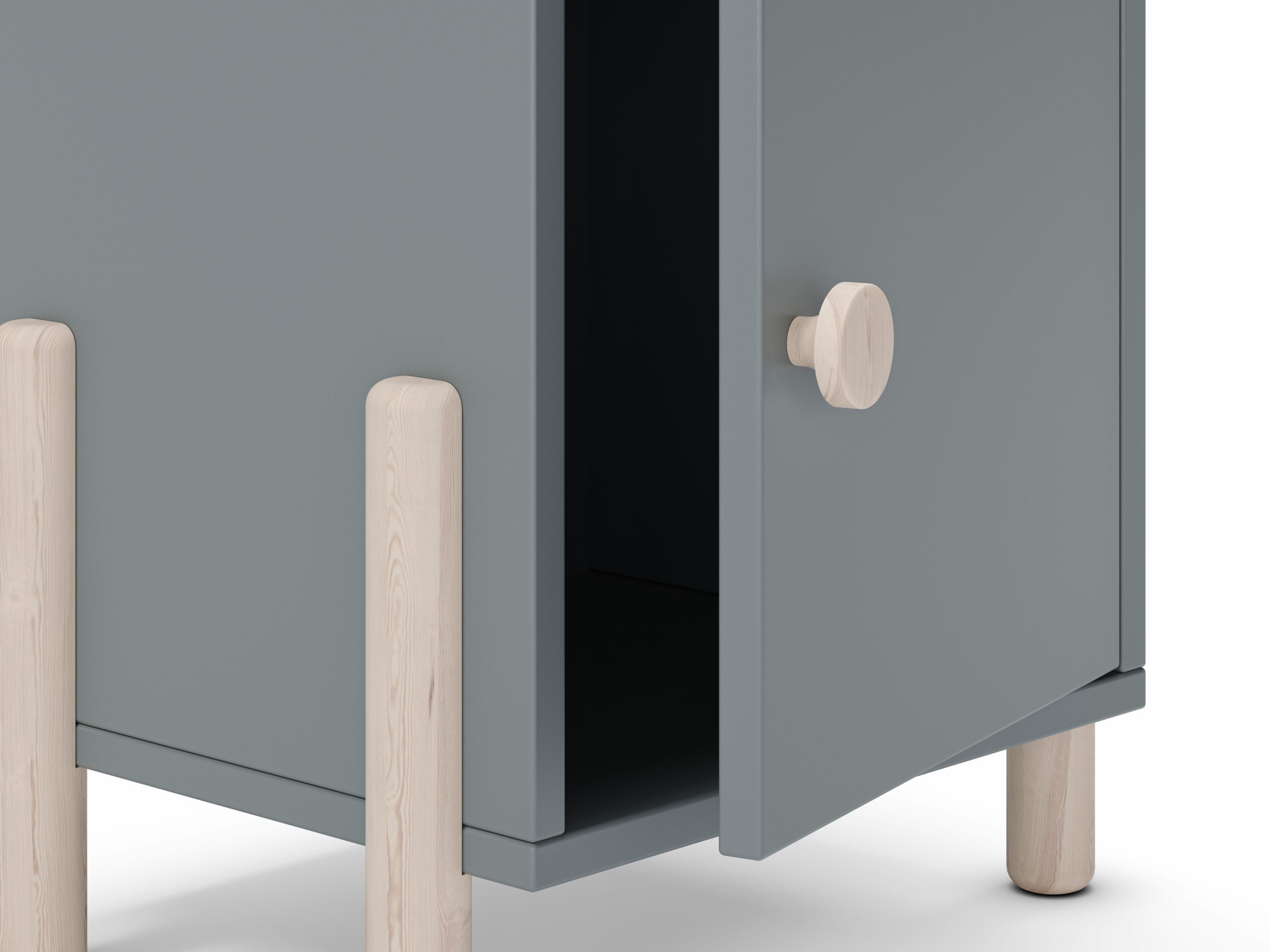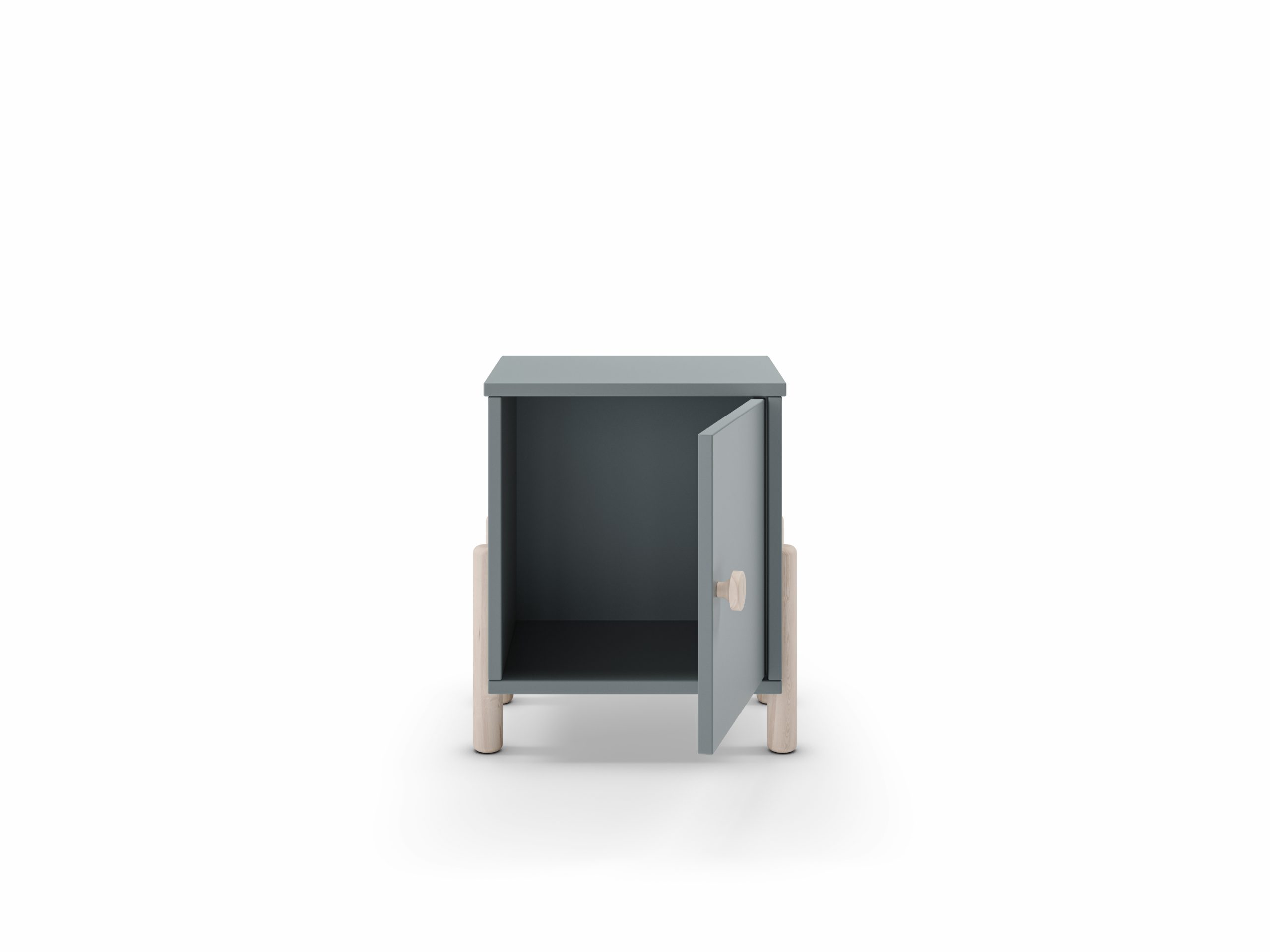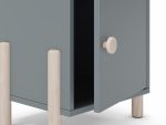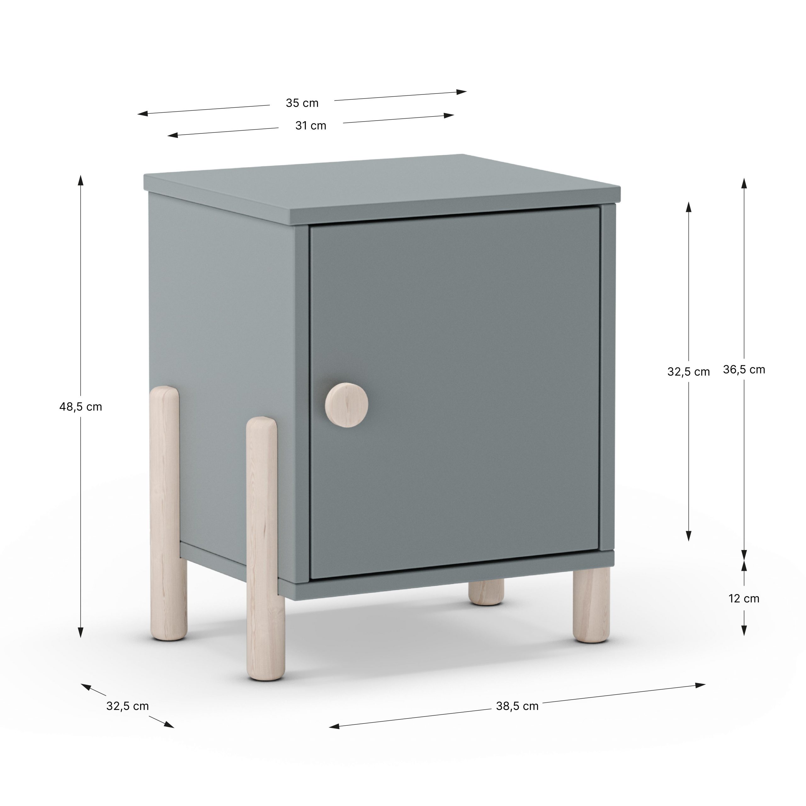 Disponible en crema y verde kaki, sus colores delicados y su diseño minimalista aportan un toque moderno y dulce, perfecto para dormitorios que buscan armonía y encanto. Su puerta frontal con tirador redondo le da un aire tierno y funcional, ideal para guardar cuentos, juguetes o pequeños tesoros.