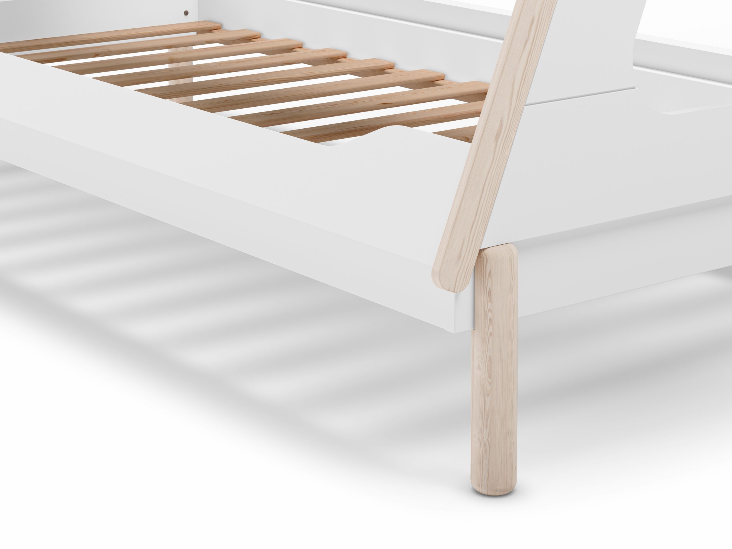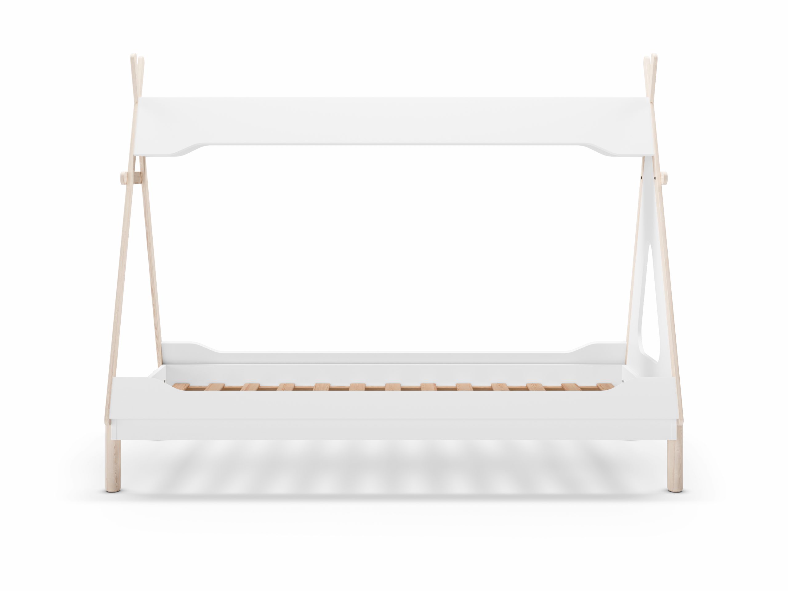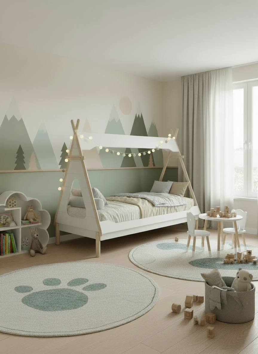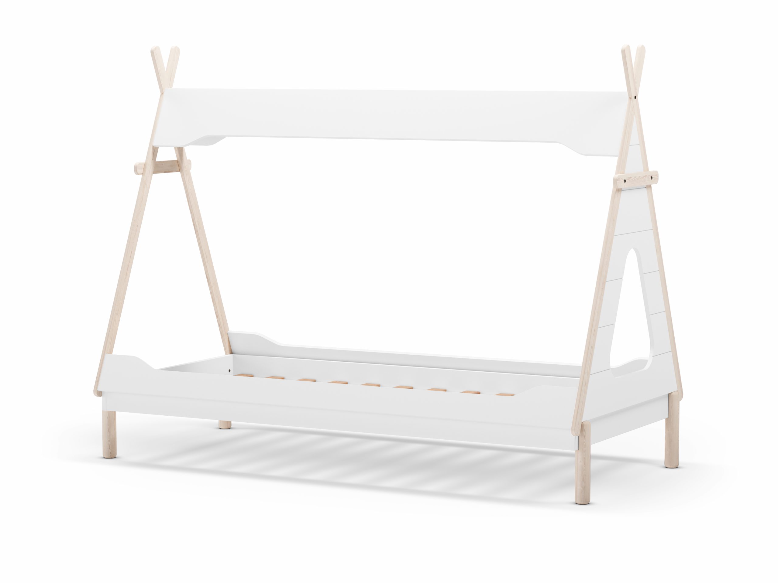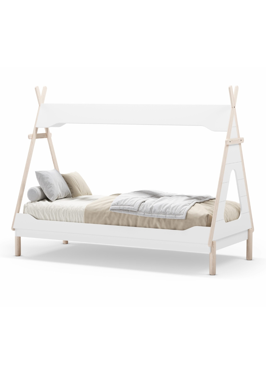 La Cama Cabaña Tipi Lilo está diseñada para convertir el dormitorio infantil en un espacio lleno de aventura, imaginación y libertad creativa. Su estructura inspirada en una cabaña tipi, fabricada en DM y madera de pino, crea un entorno acogedor y seguro donde los peques pueden dormir, jugar y soñar sin límites. Con un diseño contemporáneo disponible en color verde NORA o blanco, esta cama aporta estilo y personalidad al ambiente sin recargarlo. Sus líneas limpias y su estética tipo Montessori fomentan la autonomía, ya que los niños pueden subir y bajar con facilidad, favoreciendo su seguridad y desarrollo. Perfecta para crear rincones mágicos, añadir luces, guirnaldas o telas decorativas y hacer del dormitorio un lugar especial donde ocurren grandes historias. Ideal para colchón 90 cm.