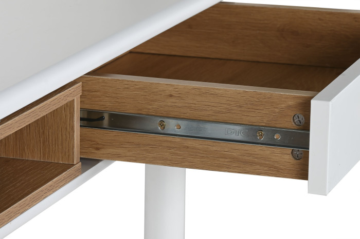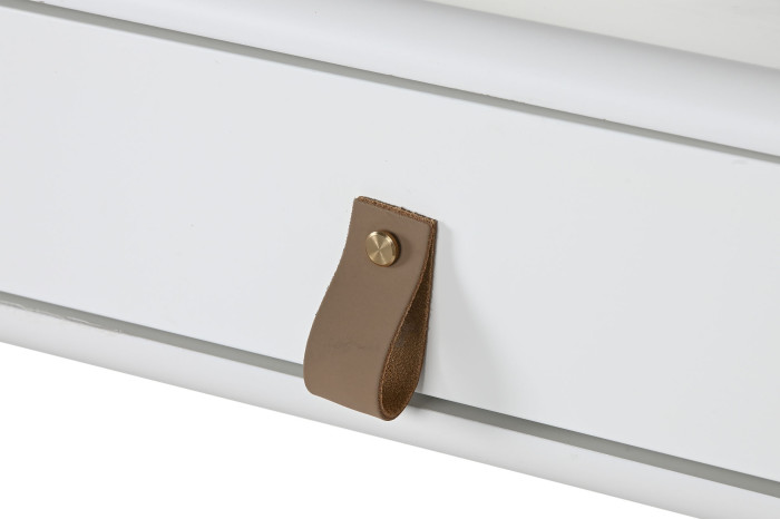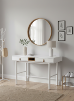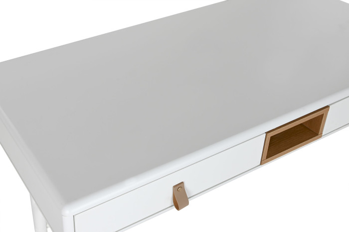 Haz que tu entrada hable de tu estilo con esta consola de MDF lacado en blanco combinada con detalles en madera MDF natural, una pieza elegante y luminosa que aporta sensación de amplitud, orden y calidez desde el primer momento.