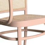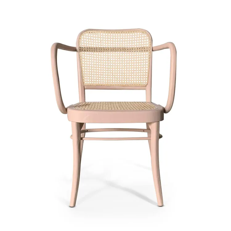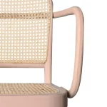 Sillón de diseño clásico renovado con un toque moderno gracias a su acabado en color rosa suave. Fabricado en madera de olmo de gran resistencia y durabilidad, con asiento y respaldo en rejilla trenzada de mimbre, que aporta ligereza visual y gran comodidad.