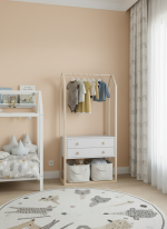 Con su barra superior para colgar prendas y sus cajones amplios, Goku combina orden y ternura en un solo mueble. Además, su estética suave y moderna se adapta perfecto a cualquier dormitorio infantil, convirtiéndose en un detalle que enamora a simple vista.