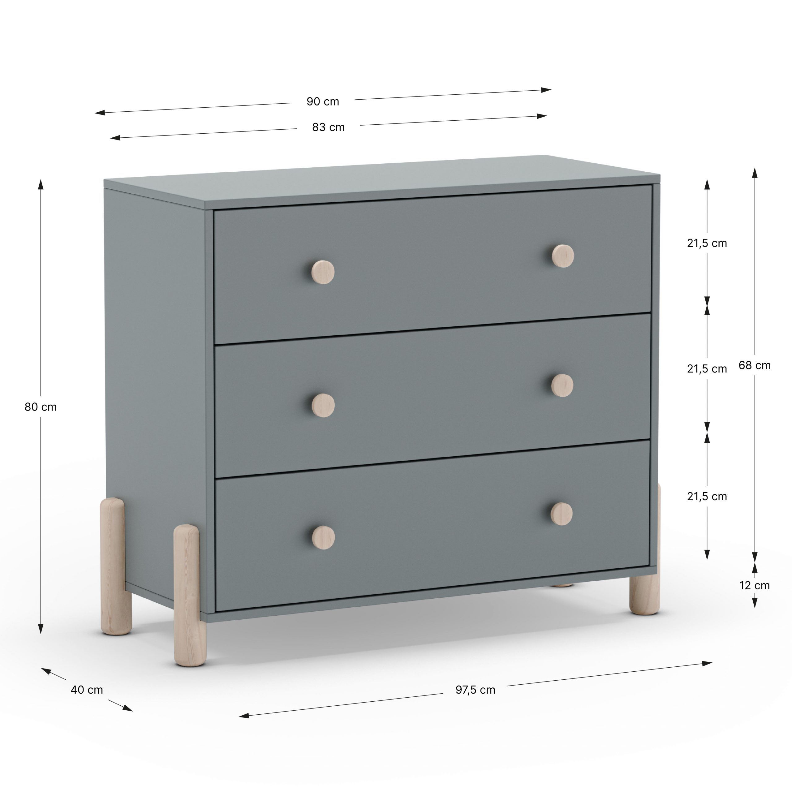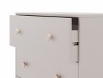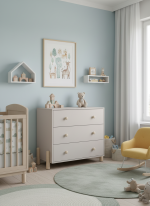 Disponible en gris claro o verde kaki, aporta un toque moderno y dulce que encaja fácilmente en cualquier estilo decorativo. Sus líneas redondeadas y su estructura estable convierten esta cómoda en una pieza práctica y segura para el día a día.