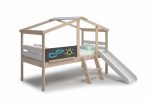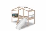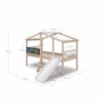 Esta encantadora cama cabaña infantil transforma el dormitorio en un universo de juego, creatividad y descanso. Su estructura, con forma de casita elevada, está fabricada en madera de pino y detalles en DM, aportando resistencia, estabilidad y un diseño cálido y natural que se integra fácilmente en cualquier habitación infantil.
