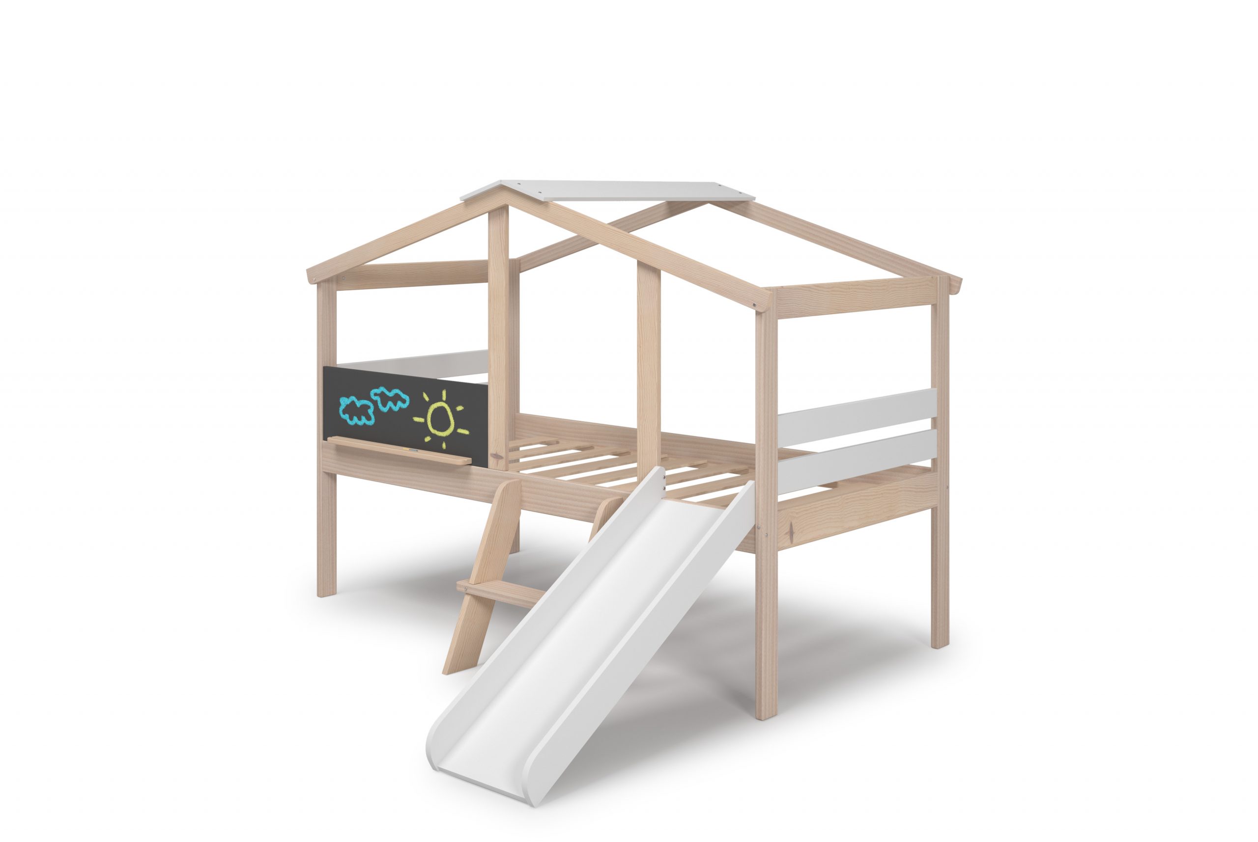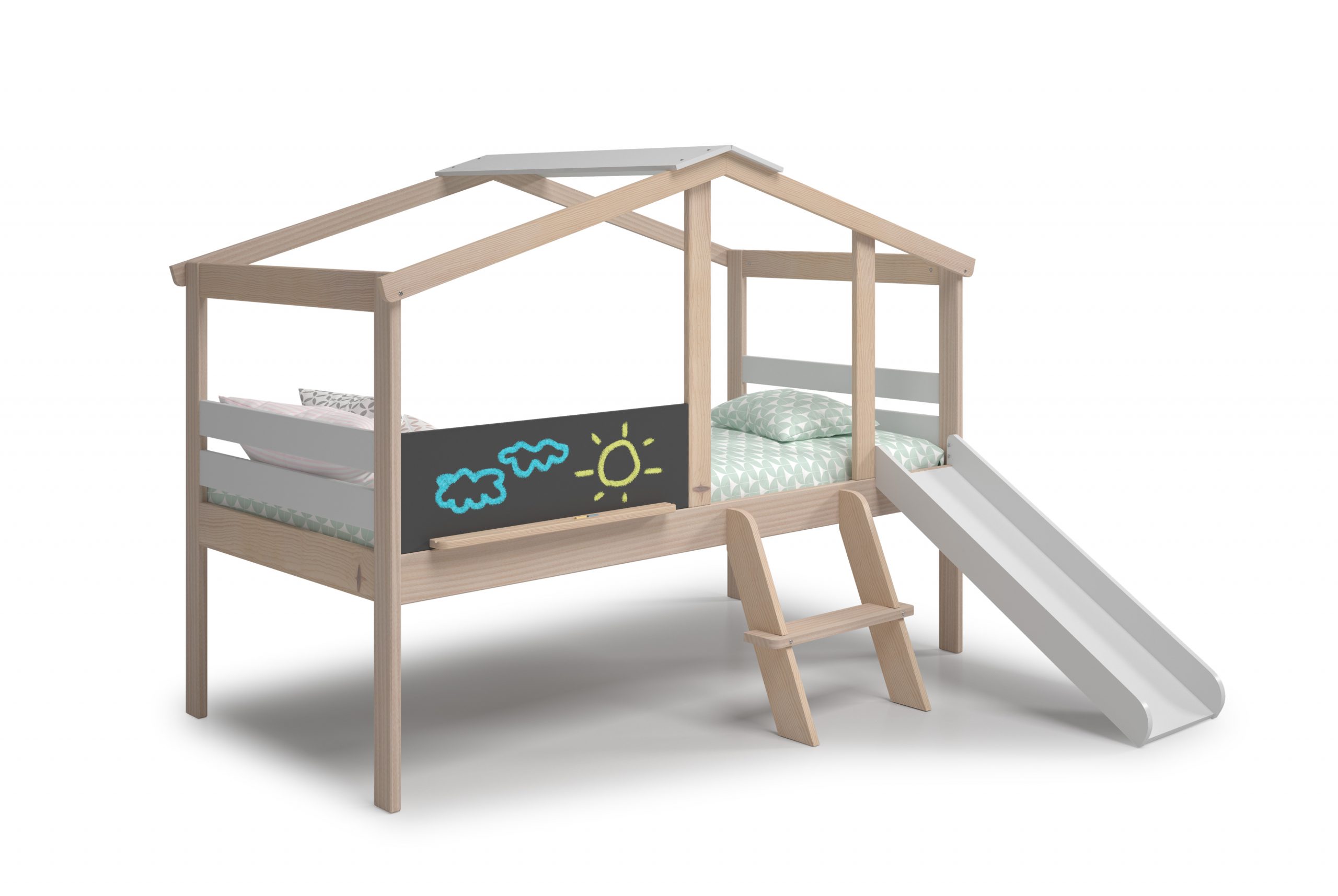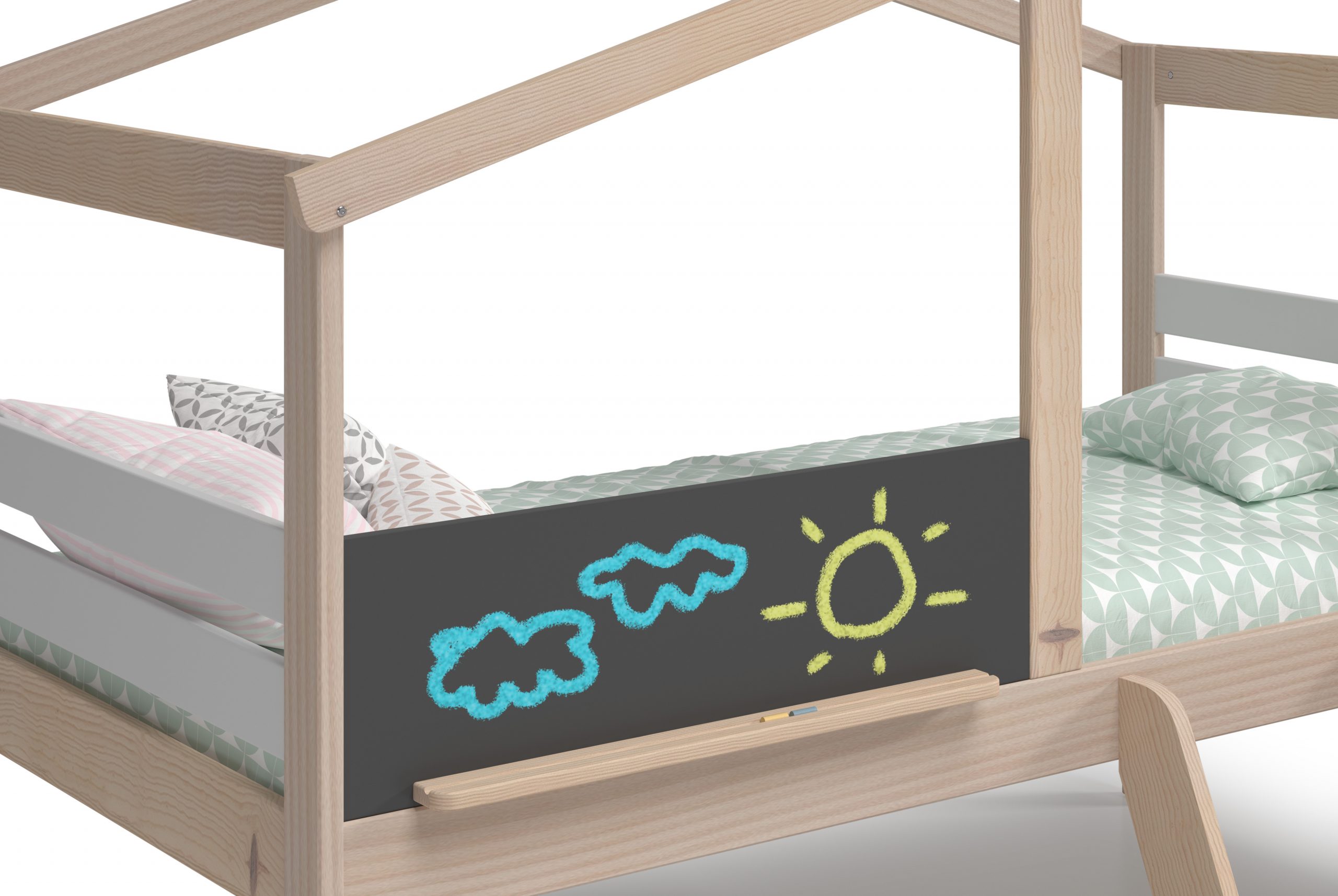 Incluye una divertida pizarra frontal para que los pequeños puedan dibujar y expresar su imaginación, además de una escalera de fácil acceso y un tobogán que añade un plus de entretenimiento al día a día. Las barandillas laterales proporcionan seguridad durante el sueño y el juego.