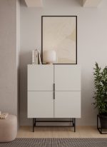 Mueble auxiliar alto, 4 puertas con patas metálicas.