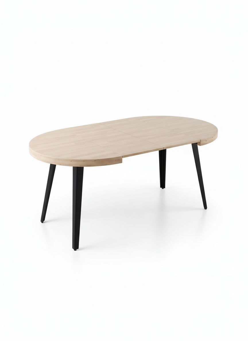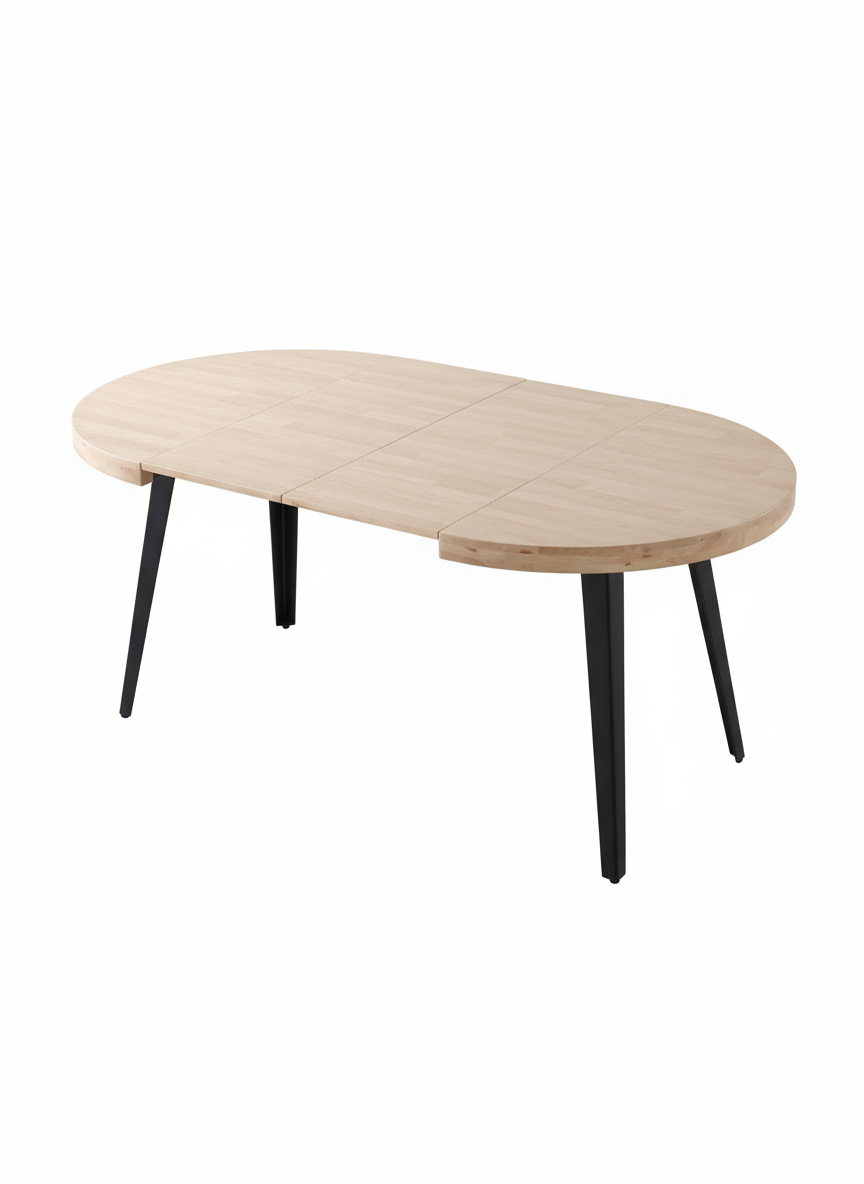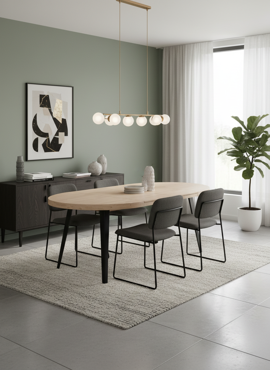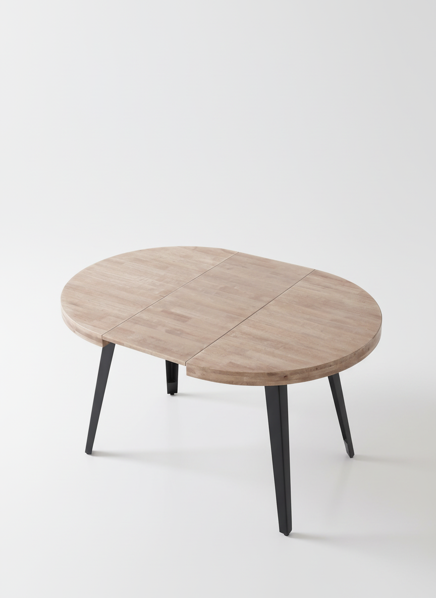 Su tapa redonda extensible, fabricada en madera de roble con un robusto grosor exterior de 54 mm, garantiza resistencia y presencia visual. Gracias a su sistema de extensión, pasa fácilmente de 100 cm a 140 cm o 180 cm, permitiéndote recibir más invitados sin renunciar a la comodidad ni al diseño.
