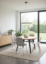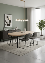 La Mesa de Comedor Kora combina diseño contemporáneo y funcionalidad inteligente para adaptarse a cada momento en tu hogar. Con un elegante acabado en roble nordish y patas metálicas en color negro, aporta calidez natural y un estilo moderno que realza cualquier comedor.