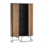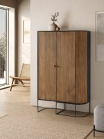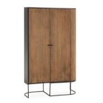 Fabricado íntegramente en madera de mango, este mueble resalta por sus vetas únicas y su acabado natural, que convierten cada pieza en un elemento exclusivo. Su diseño vertical y estilizado lo hace perfecto para aprovechar al máximo el espacio, aportando una gran capacidad de almacenaje sin recargar el ambiente.