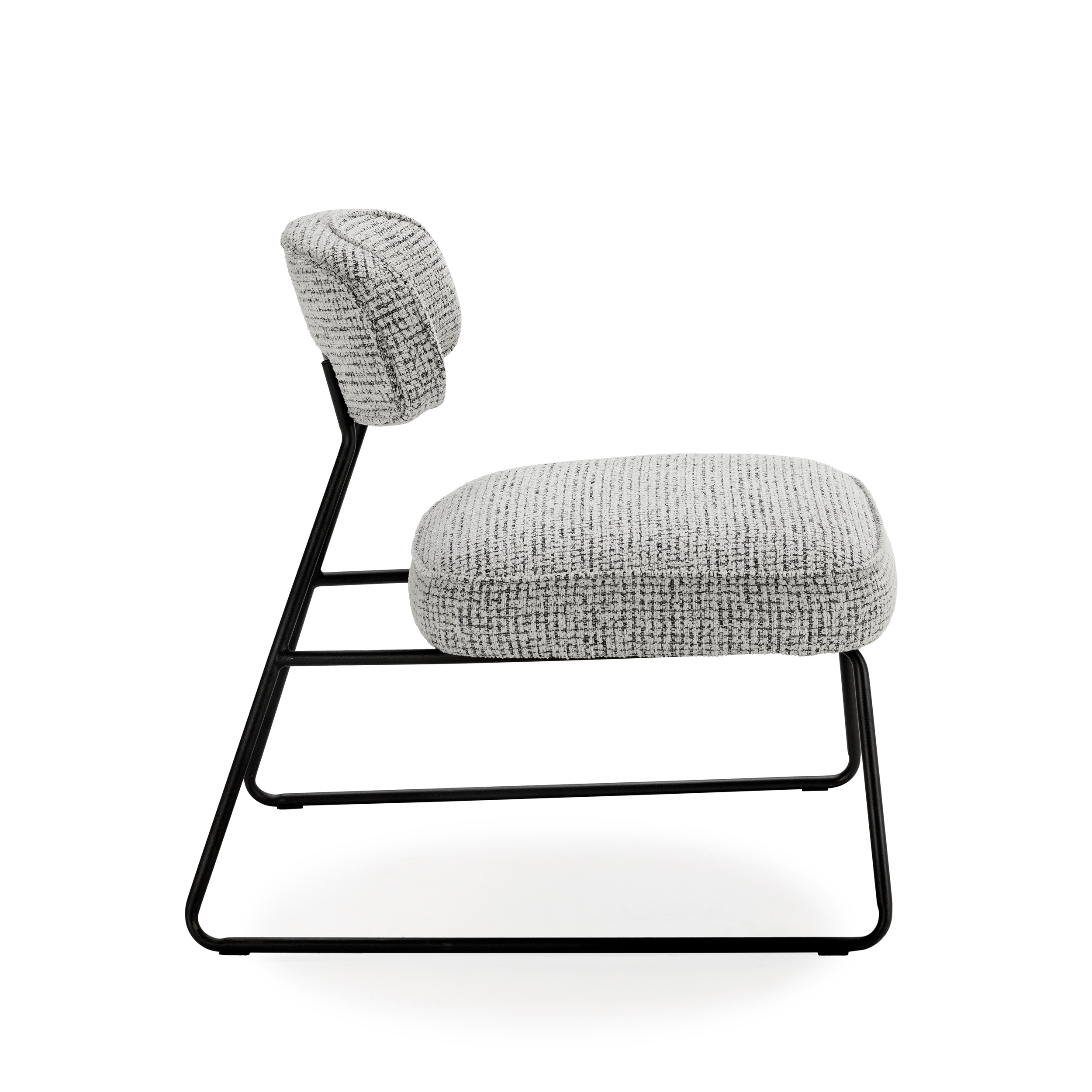 Mare destaca por su estética contemporánea y minimalista. Su asiento amplio y respaldo acolchado proporcionan una comodidad sorprendente, mientras que la estructura metálica estilizada aporta ligereza visual y un carácter moderno e industrial.