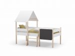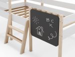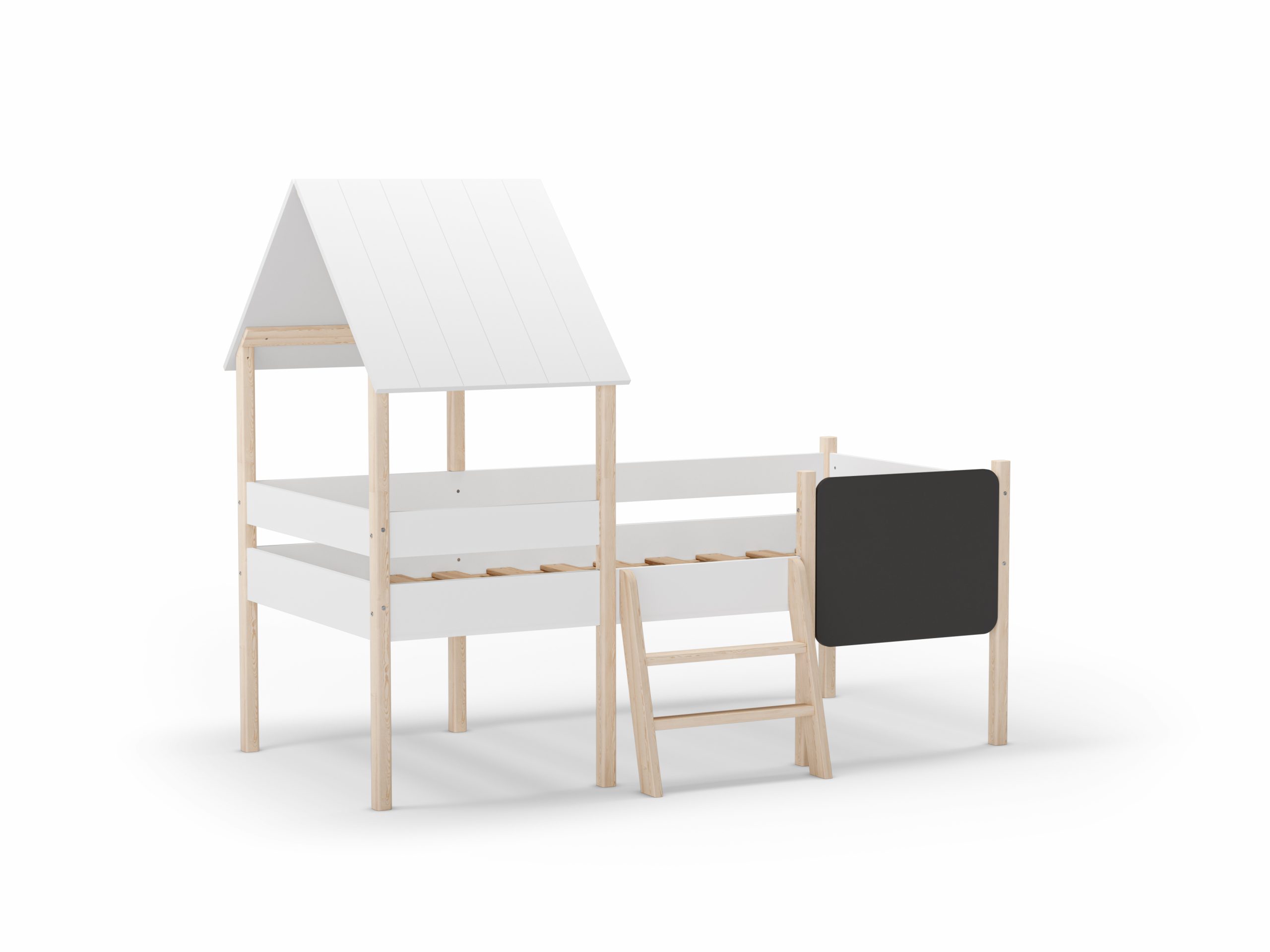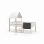 Convierte la habitación infantil de tu peque en un pequeño mundo de aventuras con nuestra encantadora Cama Cabaña Moon con Pizarra y Escaleras, un diseño en forma de casita que despierta la imaginación y fomenta el juego creativo convirtiéndose no solo en un lugar para descansar sino en un auténtico refugio donde vivir grandes historias. Incluye una pizarra integrada perfecta para dibujar, escribir mensajes o dejar volar la creatividad cada día, y cuenta con escaleras seguras y cómodas que permiten acceder fácilmente a la cama aportando diversión y favoreciendo la autonomía de los más pequeños. Fabricada con estructura resistente de madera de pino y acabados suaves lacados disponible en varios colores para adaptarse a cualquier estilo de dormitorio, creando un ambiente cálido, divertido y lleno de personalidad. Una cama cabaña que se transforma en un espacio mágico donde los sueños y fantasías de los más peques comienzan mucho antes de dormir. Para colchones de 90×190 cm