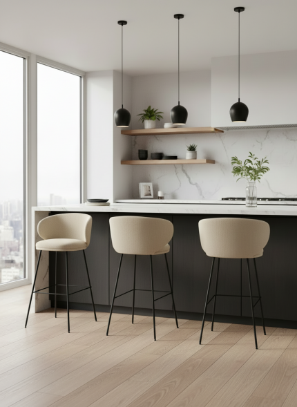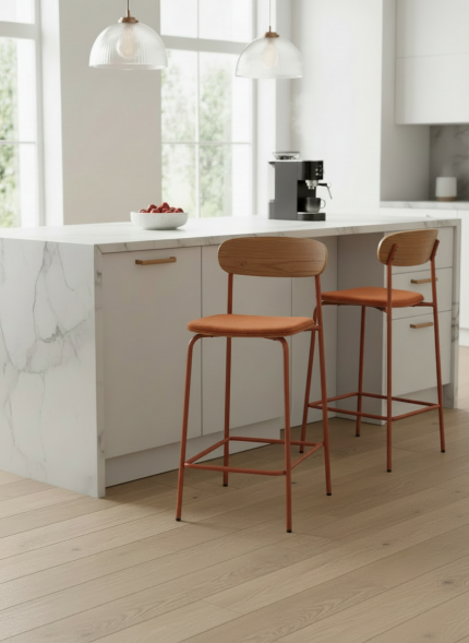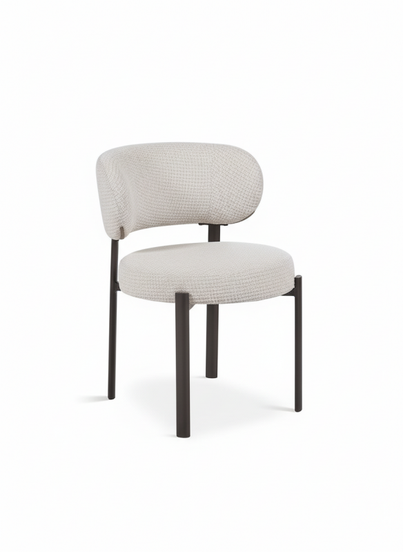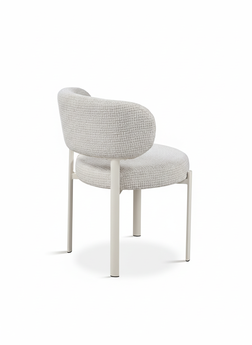 El respaldo curvo proporciona un apoyo ergonómico que invita a sentarse con comodidad, y su diseño ligero mantiene una estética limpia y actual sin perder presencia.
