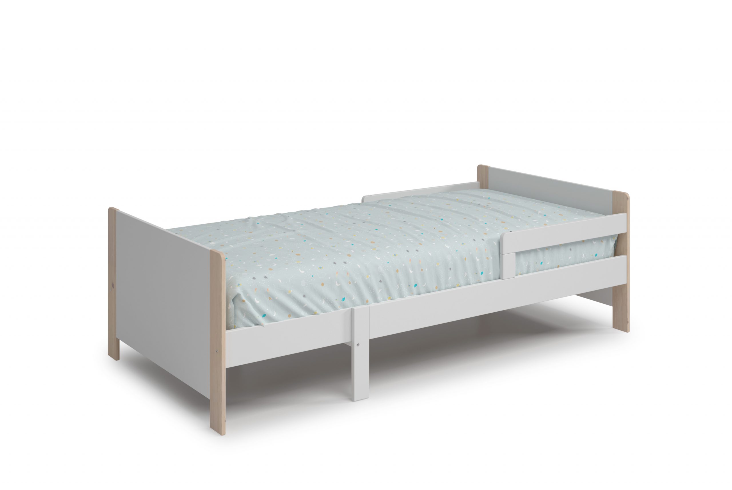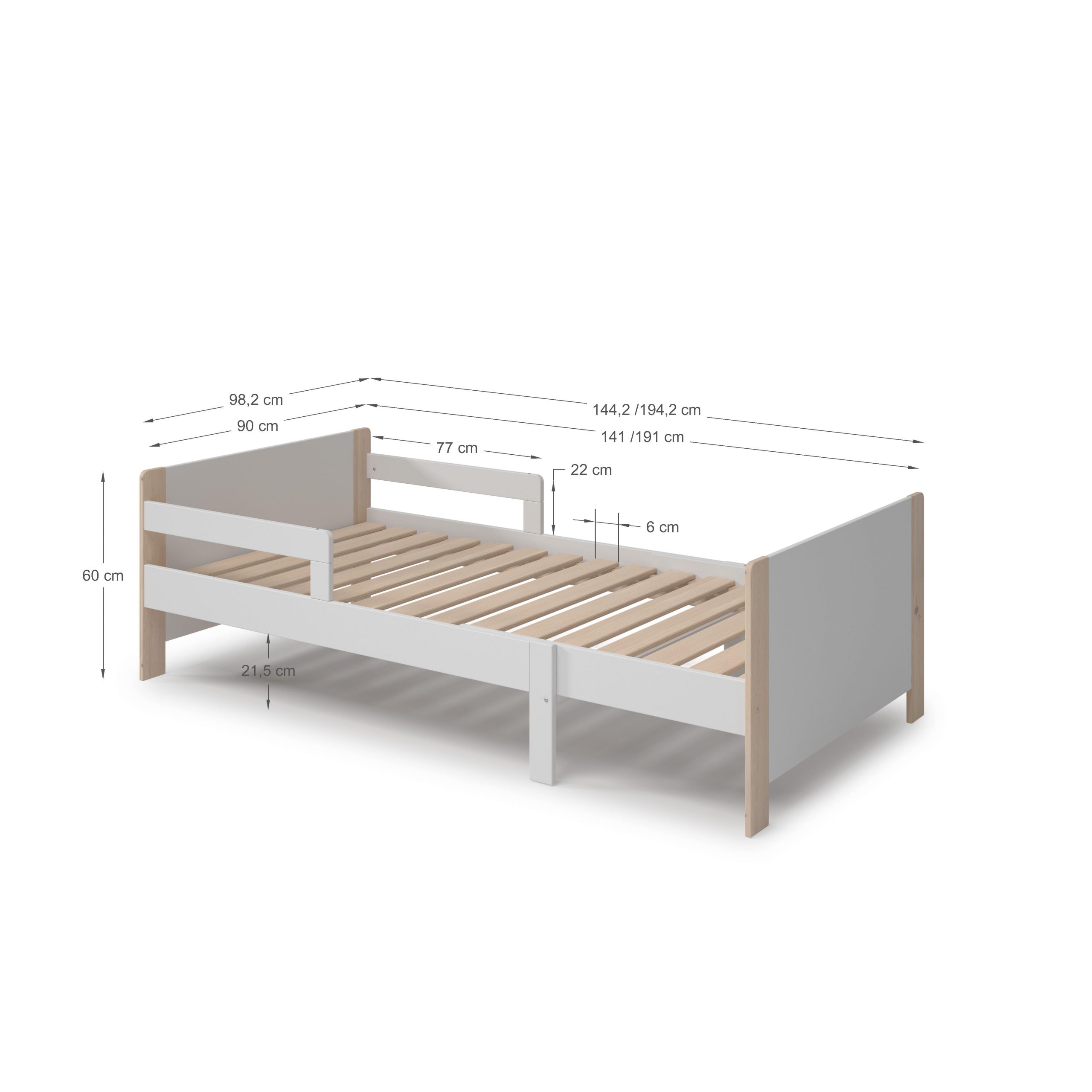 Lo más destacado de este modelo es su capacidad de adaptación. La cama inicial mide 90x140 cm, un tamaño perfecto para niños pequeños que ya han superado la cuna. Gracias a su kit de extensión, se convierte fácilmente en una cama juvenil estándar de 90x190 cm, prolongando su vida útil durante años. Está construida con una base robusta de madera de pino natural y paneles de DM de alta calidad, disponible en elegantes acabados verde y blanco.