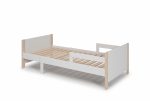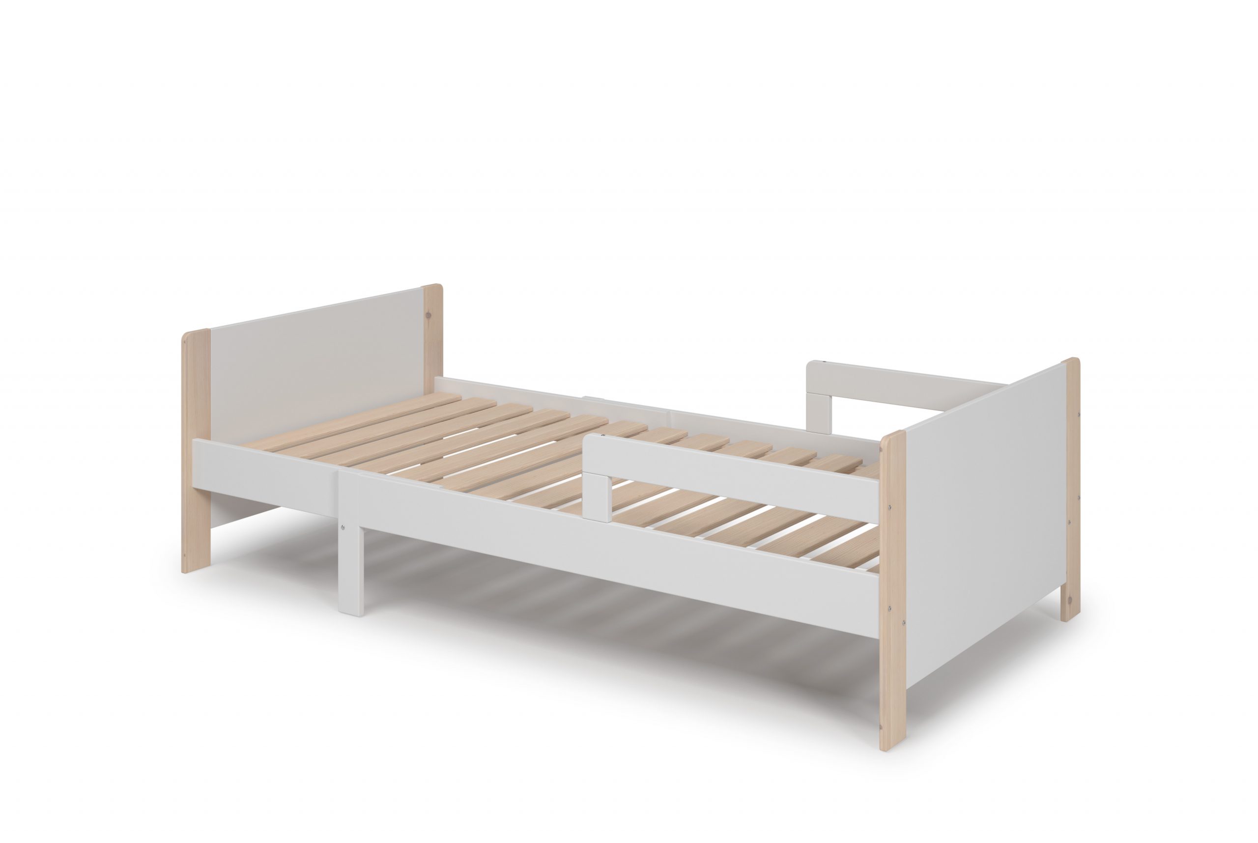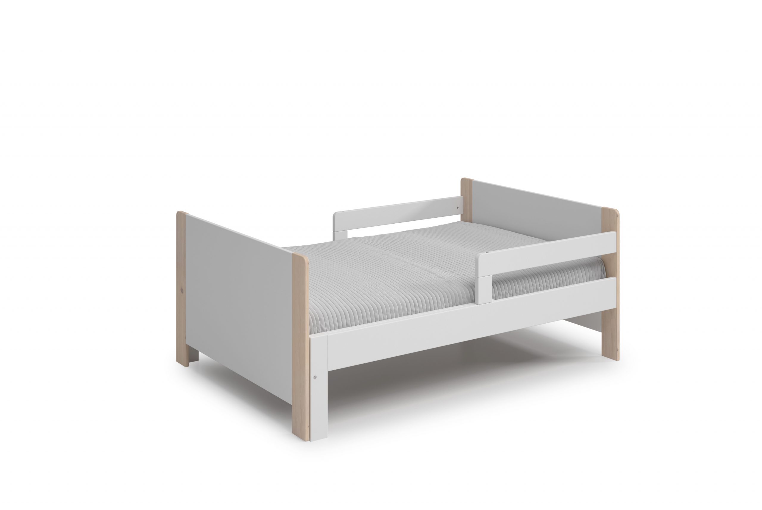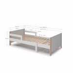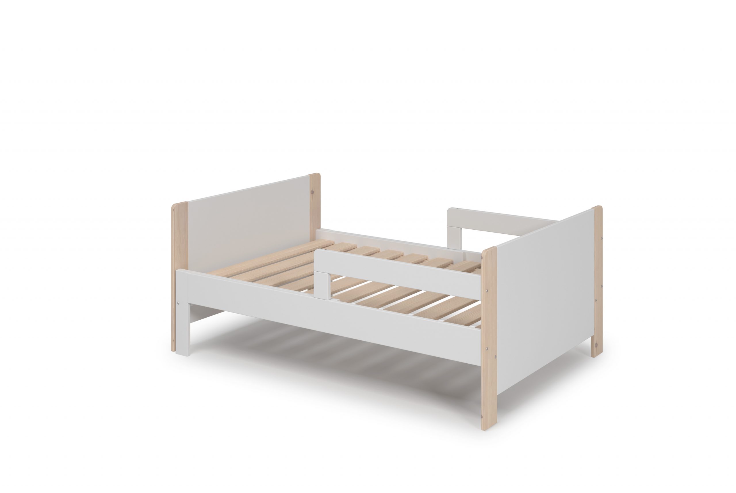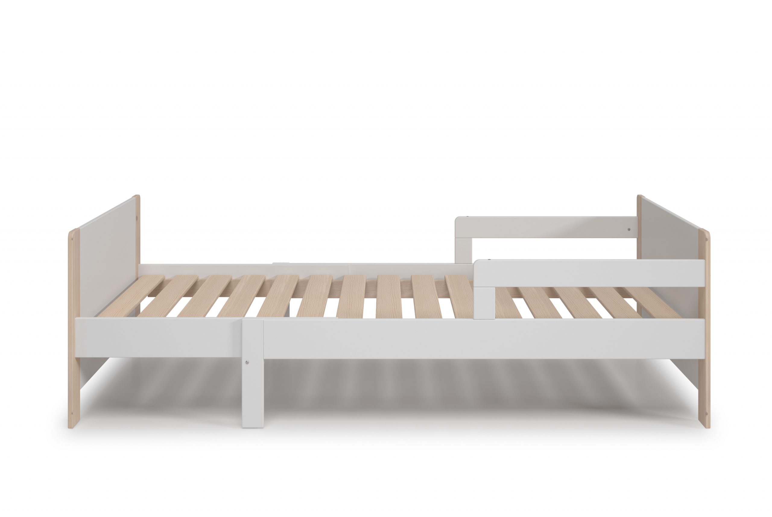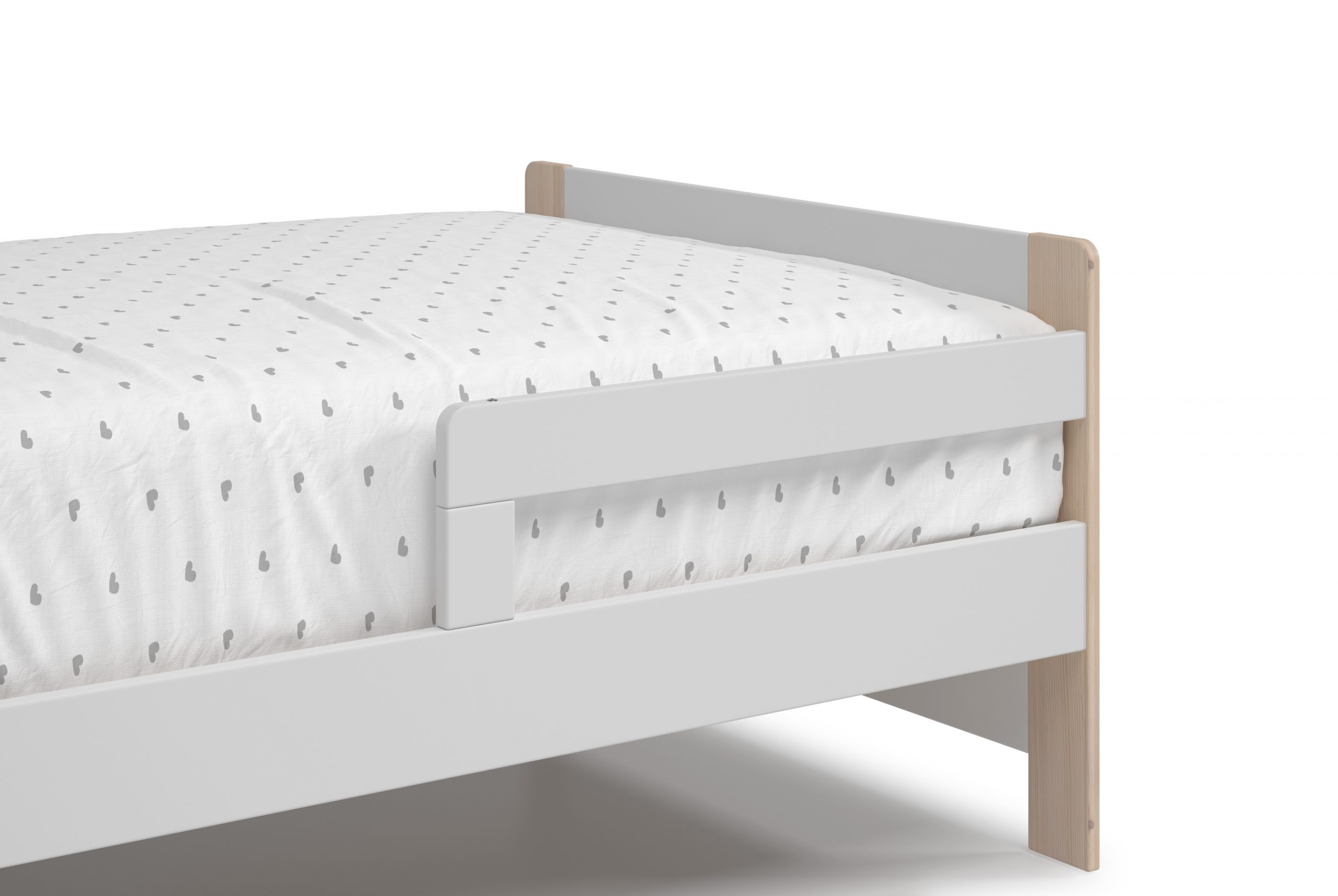 Esta Cama Evolutiva combina un atractivo estético con una funcionalidad a largo plazo, siendo la solución ideal para acompañar el crecimiento de su hijo. Su diseño de estructura abierta y estilo nórdico-escandinavo crea un espacio de descanso acogedor que estimula el juego y la imaginación. Las barandillas laterales y el diseño bajo ofrecen un entorno seguro, facilitando la autonomía del niño al subir y bajar.
