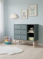 Su diseño combina de forma encantadora blanco con verde kaki, creando un estilo dulce, moderno y fácil de integrar en cualquier decoración. Sus líneas suaves y su aspecto limpio hacen que la cómoda Nemo aporte calma y orden al espacio.