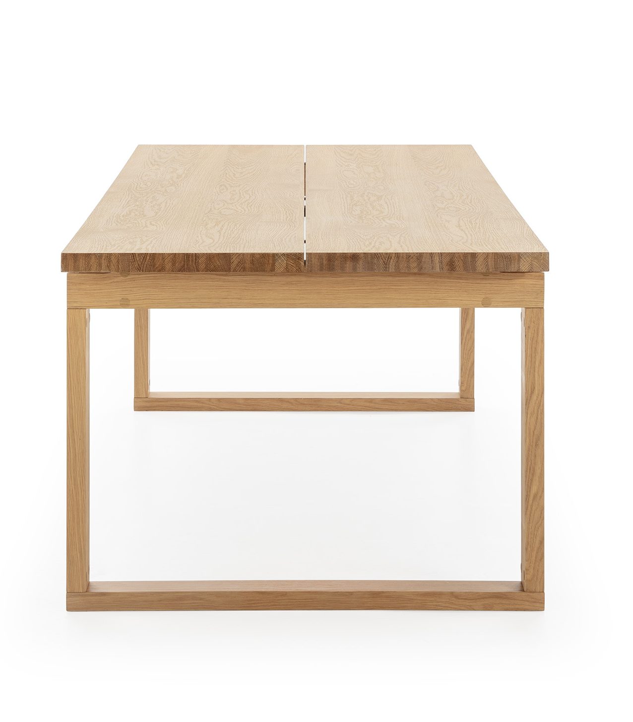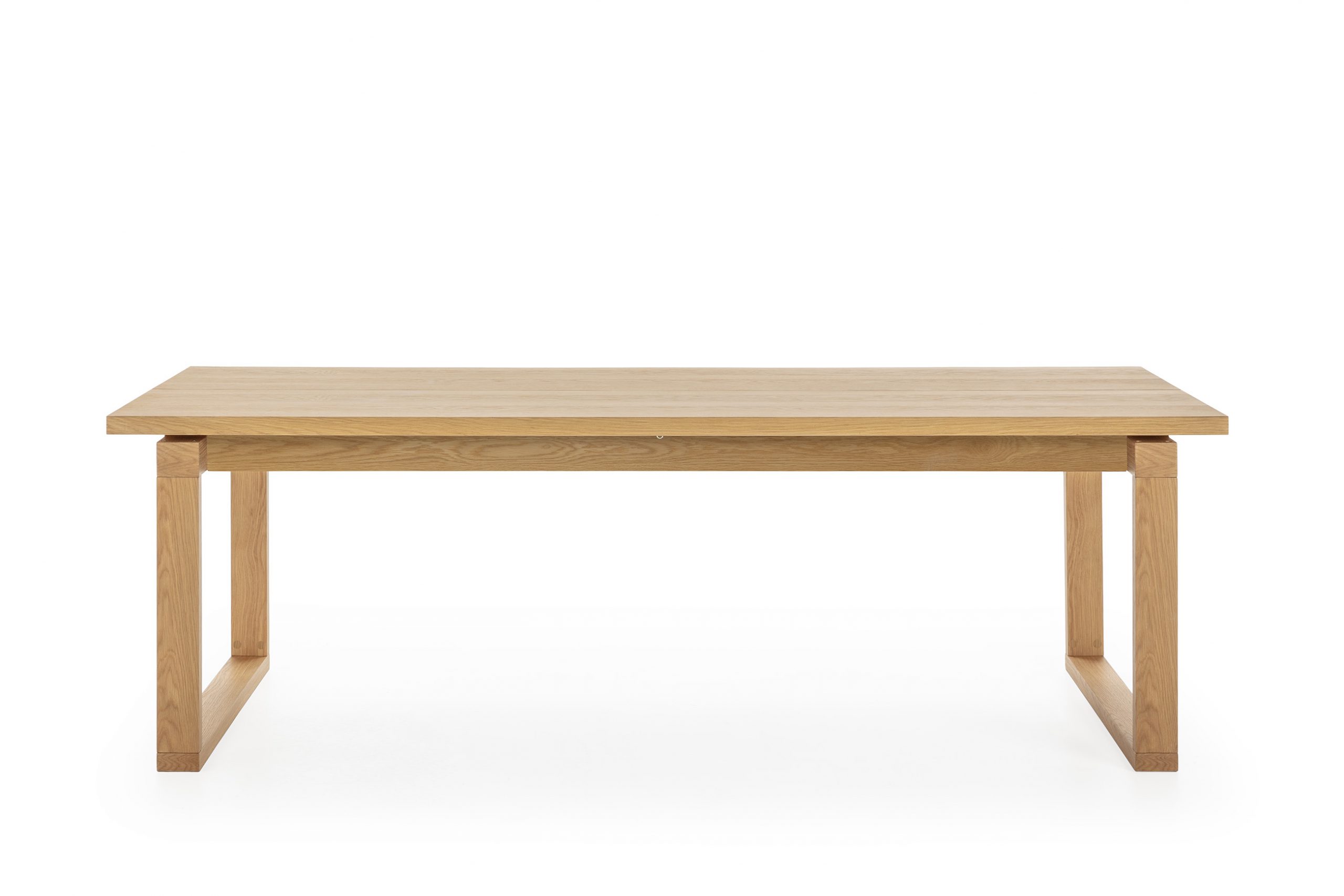 La Mesa de Comedor Roble Nexo de 220 cm combina diseño minimalista y materiales de alta calidad para crear un ambiente contemporáneo y natural. Su amplia superficie rectangular formada por una tapa en madera de roble destaca por su textura cálida y vetas naturales, aportando elegancia y autenticidad a cualquier espacio.