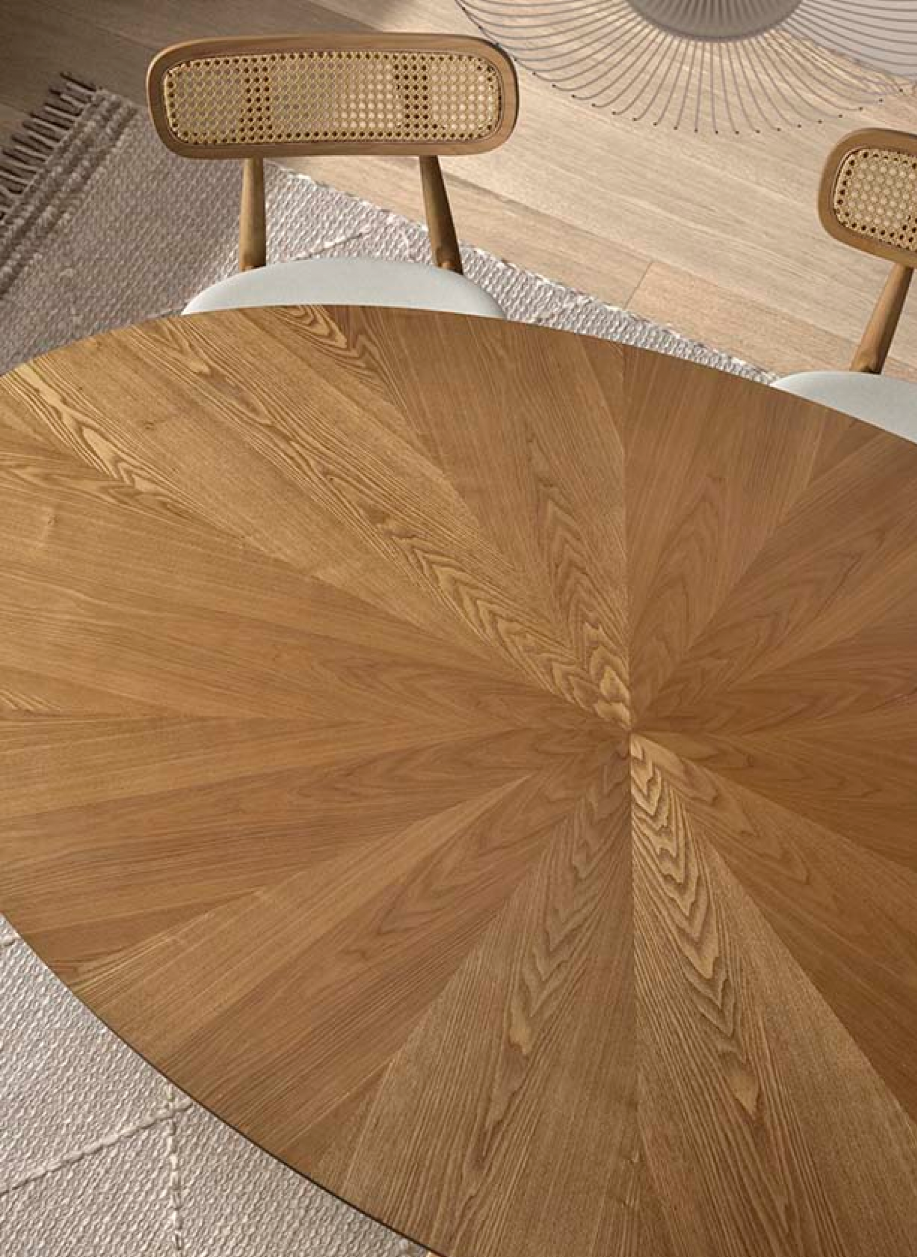 La tapa de la mesa está construida con chapa de roble de alta calidad, que ofrece la belleza natural y la veta característica de la madera, a la vez que asegura durabilidad y resistencia. El acabado en tono roble natural aporta una calidez atemporal y se integra a la perfección en una amplia gama de estilos decorativos, desde el nórdico hasta el contemporáneo.