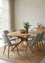 La Mesa de Comedor Nilo es una pieza elegante y funcional, diseñada para añadir un toque de sofisticación orgánica a tu comedor. Su forma ovalada no solo optimiza el espacio y facilita el flujo en la habitación, sino que también fomenta una conversación más íntima y agradable entre los comensales.