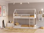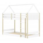 Ideal para dormitorios compartidos, la litera optimiza el espacio vertical, dejando más metros libres para jugar. La cama inferior a ras de suelo se alinea con la filosofía Montessori, promoviendo la autonomía del niño al subir y bajar. Su diseño de cabaña permite decorarla con luces y textiles, transformándola en un rincón de fantasía seguro y funcional.