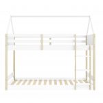 Fabricada para la máxima durabilidad y estabilidad, la litera está construida con la calidez de la madera de pino natural para la estructura y paneles de DM (fibra de densidad media) para los detalles. Está disponible en dos acabados: un relajante verde suave para un toque natural, o un clásico blanco que aporta luminosidad. Ambas opciones facilitan la combinación con cualquier paleta de colores de la habitación.