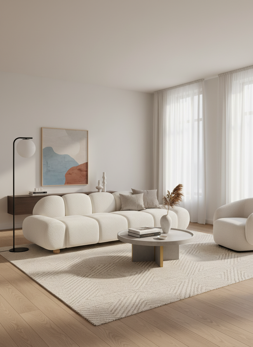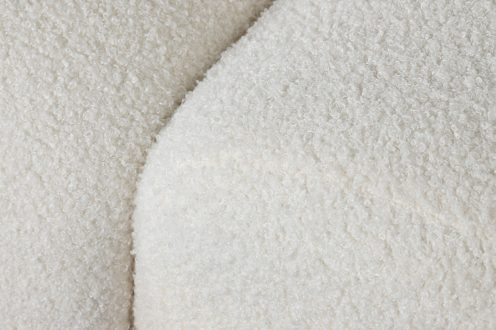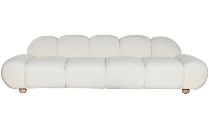 Este sofá no solo destaca por su presencia, sino también por la sensación acogedora que transmite su tejido mullido. Es una pieza ideal para crear ambientes sofisticados, luminosos y con un guiño a la tendencia organic chic, perfecta para quienes buscan algo único sin renunciar a la elegancia.
