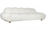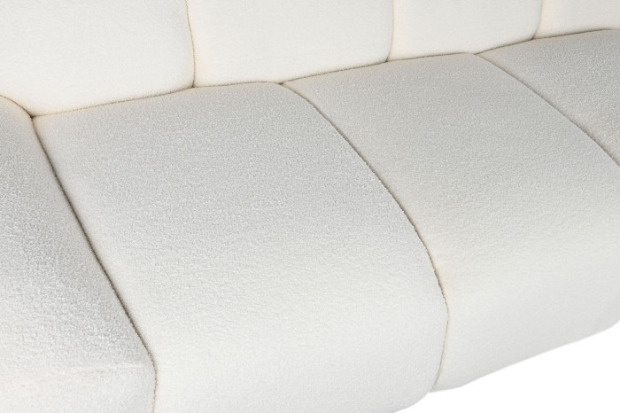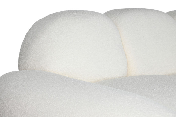 Sofá de diseño en tela “borreguito” blanca combina suavidad, estilo y un encanto irresistible. Su silueta ondulada de nueve módulos acolchados crea un look soft & sculptural que aporta personalidad inmediata a cualquier espacio, desde halls de entrada hasta zonas lounge o comercios con aire contemporáneo.