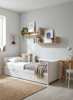 Ideal para optimizar el descanso en espacios reducidos o habitaciones compartidas, esta cama nido ofrece una inversión duradera y práctica. Durante el día, funciona como un asiento acogedor; por la noche, se transforma rápidamente en dos camas individuales. Es la opción inteligente para asegurar un doble descanso completo, con materiales de calidad y una funcionalidad impecable.
