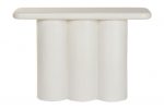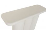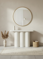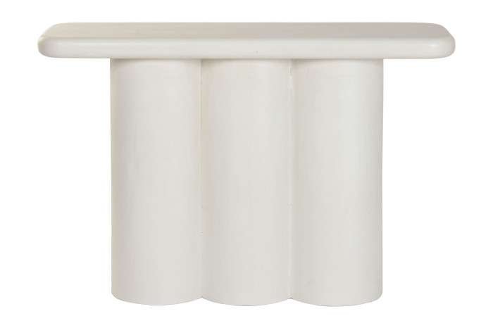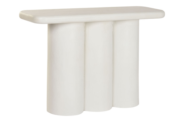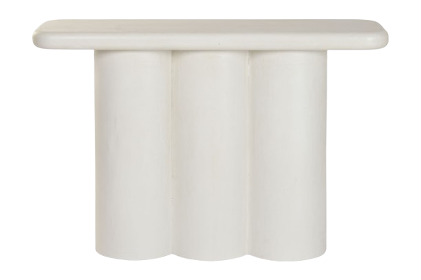 La Consola Roma está elaborada en resina y MDF, con un acabado blanco rugoso que aporta textura y un toque artesanal. Sus medidas 120 × 38 × 80 cm la hacen perfecta para entradas, pasillos o salas, ofreciendo una presencia elegante sin saturar el espacio. Su diseño destaca por la base formada por tres columnas cilíndricas, que le dan un estilo moderno, escultórico y minimalista. La superficie superior cuenta con bordes suavemente redondeados, lo que añade una sensación de ligereza y sofisticación. Es una pieza decorativa y funcional, ideal para exhibir objetos, floreros o iluminación ambiental, combinando estética contemporánea con resistencia y estabilidad.