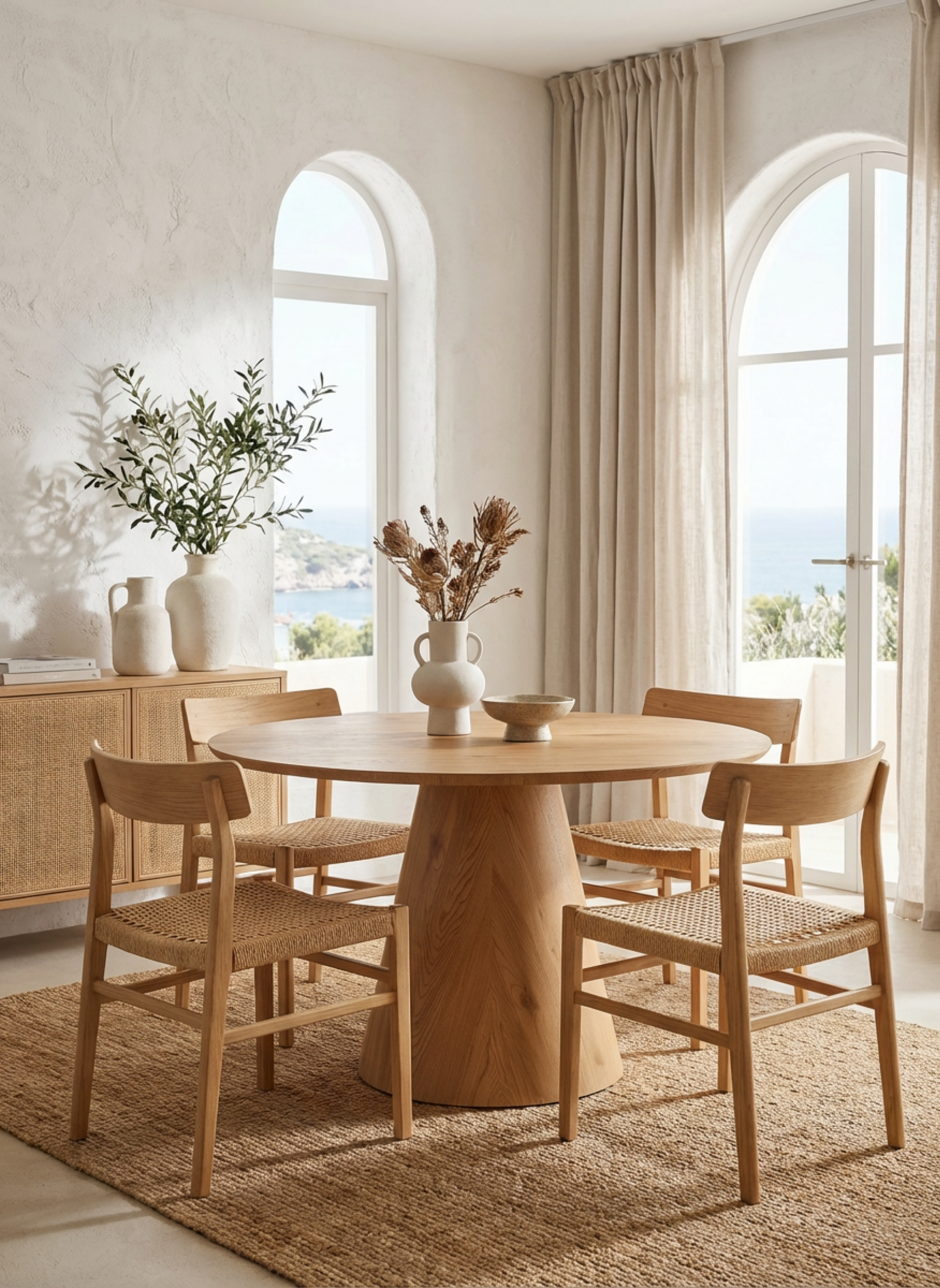 Con un ancho de 120 cm, esta mesa redonda es perfecta para comedores de tamaño medio o pequeño, acomodando cómodamente a 4 o 5 personas. Su forma circular es ideal para fomentar la conversación y el ambiente social. La Mesa Tabi es la elección perfecta para todo tipo de interiores, gracias a su versatilidad, simplicidad, funcionalidad y su diseño llamativo.
