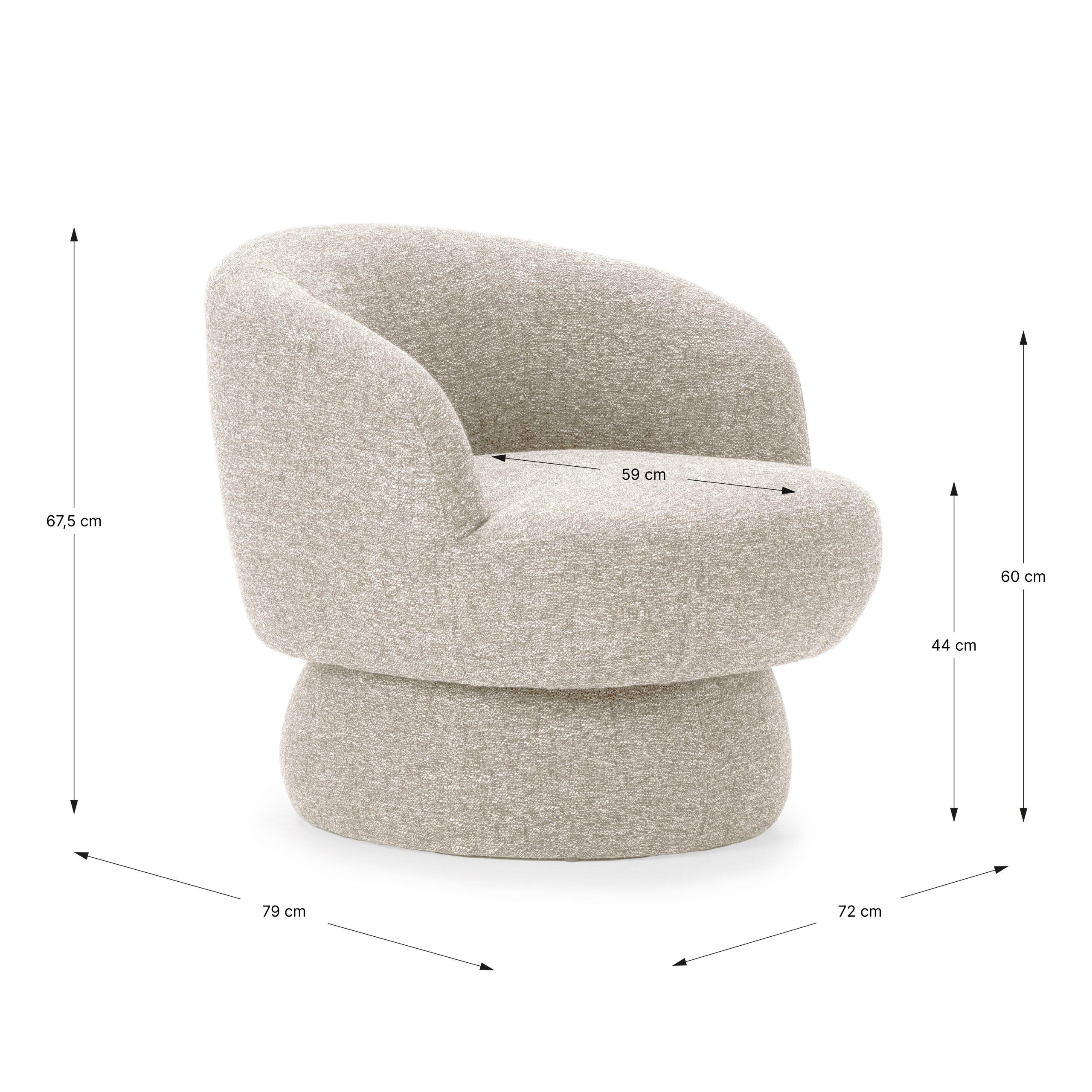 El Torino destaca por su diseño original y su silueta redondeada que invita a relajarse. Tapizado en una tela de textura cálida y elegante, aporta confort y estilo en cualquier ambiente. Su base compacta y estable refuerza su carácter contemporáneo, convirtiéndolo en una pieza ideal para salones modernos, rincones de lectura o espacios comerciales con personalidad.