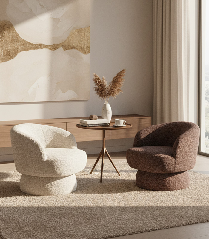 Un sillón giratorio que combina estética y comodidad en equilibrio perfecto.
