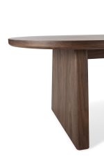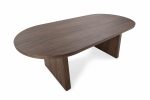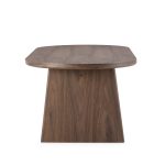Esta mesa de centro es una pieza de diseño que se distingue por su forma ovalada y su base de pedestal sólido, creando una silueta orgánica y moderna. Su fabricación combina DM con chapa de madera de alta calidad, lo que le proporciona un acabado robusto, duradero y con una rica textura visual, mientras mantiene un precio accesible.
