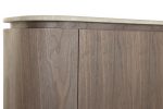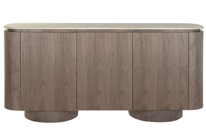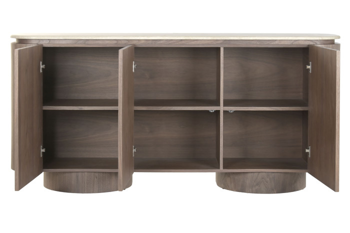 El Buffet Venus destaca por su diseño contemporáneo de líneas suaves y elegantes, con puertas curvas que aportan una estética sofisticada y única. Su estructura está fabricada en MDF tono marrón, que resalta en cualquier espacio.